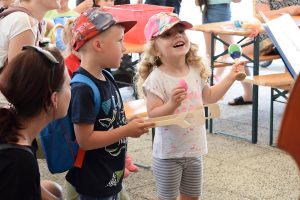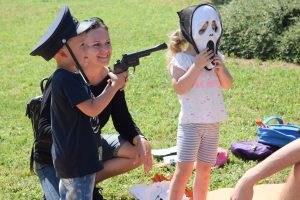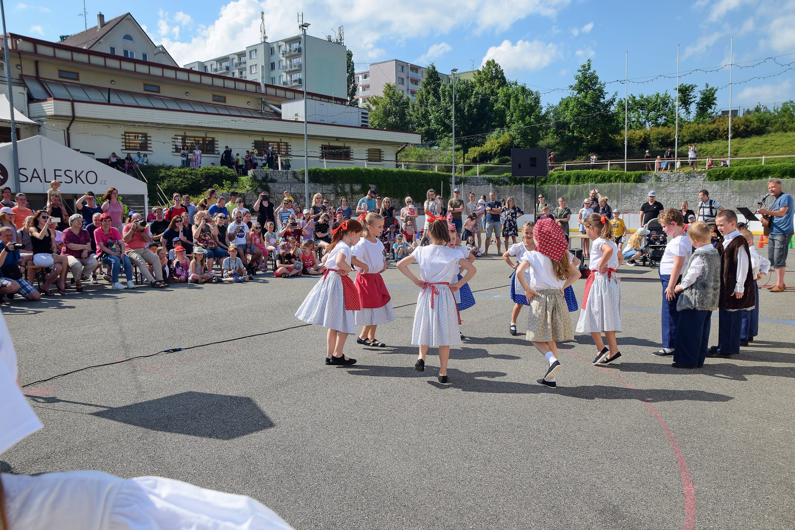 Celý program byl koncipován již od dopoledních hodin v různých částech Líšně. My v Salesku jsme začínali divadlem „Kufr“ a jeho představením „Jůlie na výletě“. Naše obavy, že děti budou již po náročném dopoledni unavené, se rozprášily hned odbitím druhé hodiny. Divadelnice Adéla předváděla krkolomné kousky a děti se bavily scénkami se slepicí Jůlií. Úderem třetí hodiny se otevřela všechna stanoviště, u kterých se okamžitě vytvářely fronty. Děti si vyzkoušely třeba slacklajnu, střílení z luku či opičí a překážkovou dráhu s florbalovými prvky. Mohly se také utkat s rytíři nebo vyzkoušet různé masky s dramatickým projevem. Nechyběly ani výtvarné aktivity, tvoření náramků či záložek, které si pak účastníci odnášeli domů. Hudební osvěžovna nám zpříjemnila odpoledne krásnou muzikou s cimbálem, basou a flétnou. No a nesmělo chybět tradiční malování na obličej . Ochotné skautky si ani na malou chvilku neodpočinuly, protože zájem byl veliký. Během odpoledne také vystoupili tanečníci z líšeňského kroužku „Tanec s radostí“, doprovázení písněmi souboru „Višně z Líšně“. Spojovacím prvkem všech zúčastněných organizací byla síť se vzkazy na otázku „Co máte v Líšni rádi?“ Všechny tyto vzkazy se pak sešly na společném večerním programu v zahradě Dělňáku. Pokud vás zajímá, co líšeňští mají v Líšni rádi, můžete mrknout do naší galerie. Kromě všech zúčastněných organizací děkujeme všem, kteří měli dobrou vůli a pomáhali napříč celou Líšní a hlavně všem účastníkům, kteří nám dali důvěru a přišli.