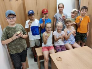 Pocházel z chudé rodiny, brzy přišel o tátu, a tak si při studiích musel přivydělávat různými řemesly, která jsme si na táboře vyzkoušeli. Tato řemesla pak Don Bosko učil kluky ve své Turínské oratoři. Kromě zažití atmosféry Oratoře s různými hrami (musíš být A + B – C = veselý + dobrý – méně zlý) jsme si zkusili vyrobit jednoduché hudební nástroje, sešít papírovou botu, zatlouci – vytáhnout a narovnat hřebíky… Vyrobili jsme si také z hřebíků hlavolam, ze dřeva praktickou bedničku a podložku pod hrnce. Promítli jsme si kousek ze života Dona Boska a nechyběla pořádná vodní bitva. Don Bosko nám pak poslední den zanechal pár dopisů, pomocí kterých jsme našli poklad, který nám připravil. Petr a Jožka