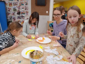 Po hodině a půl se hrneme zpátky do klubu na teplý čaj. Odpoledne se pouštíme do malování graffiti, a až ho dokončíme, náš klub bude zdobit citát Dona Boska. Kdo má chuť, ještě se jde proběhnout do tělocvičny, a už nezbývá než se rozloučit. Děti mají na závěr možnost někomu poděkovat a darovat mu nálepku s Donem Boskem, kterou pak lepíme na jeho podobiznu.