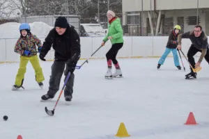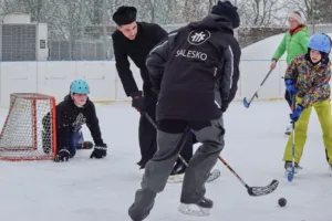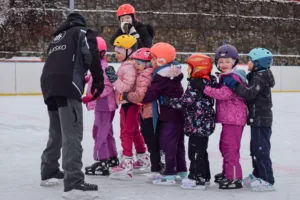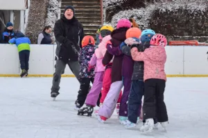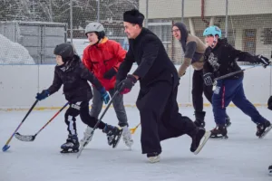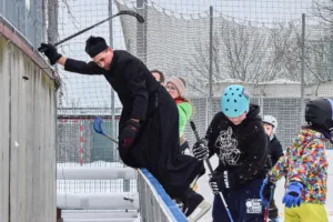 Obouváme brusle a vyrážíme na led. Po pár kolečkách Don Bosco svolává děti, vítá je a tentokrát se role prohazují – otázky dává on dětem. Věděli byste vy správné odpovědi? „Kdy se narodil Don Bosco?“ Snad za a) – Nikdy se nenarodil, je to fiktivní postava. „Jaké povolání měl Don Bosco? Možná že za e) – Zvoník, přezdívku Don měl podle zvuku zvonů. „V jakých médiích oslovoval dárce?“ To bude za d) – Stal se z něho youtuber. Takto jste odpovídali? Tak to máte všechno špatně! Zato děti na kluzišti ukázaly, že Dona Boska dobře znají, a odpovídaly správně. A teď už se pouštíme do volného bruslení, veselých her a dramatického hokejového zápasu.