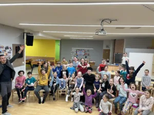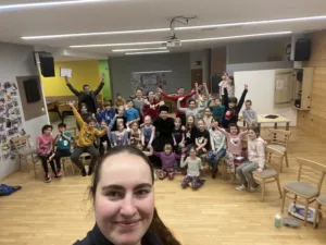 Během hodiny děti zaplnily klub. Společně nad deskovkami rozehříváme mozky a hurá do tělocvičny taky si protáhnout kosti. Před desátou se hrneme zpátky do klubu, kde nás čeká překvapení – moderátor nám představuje vzácného hosta Dona Boska. Nešetří ho otázkami a také děti pokládají nejeden dotaz. A že dnes slavíme jeho svátek, pozval nás na kluziště!