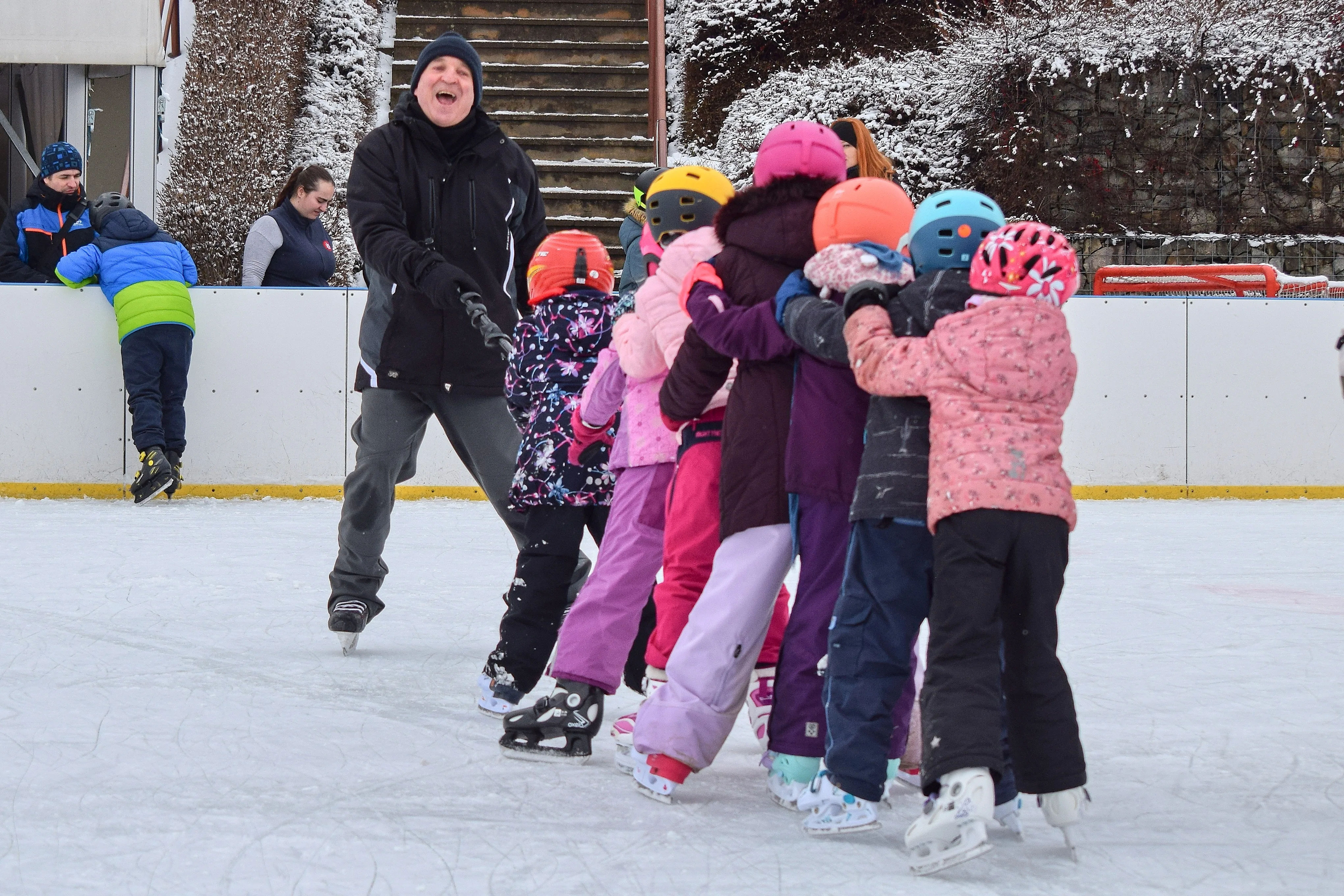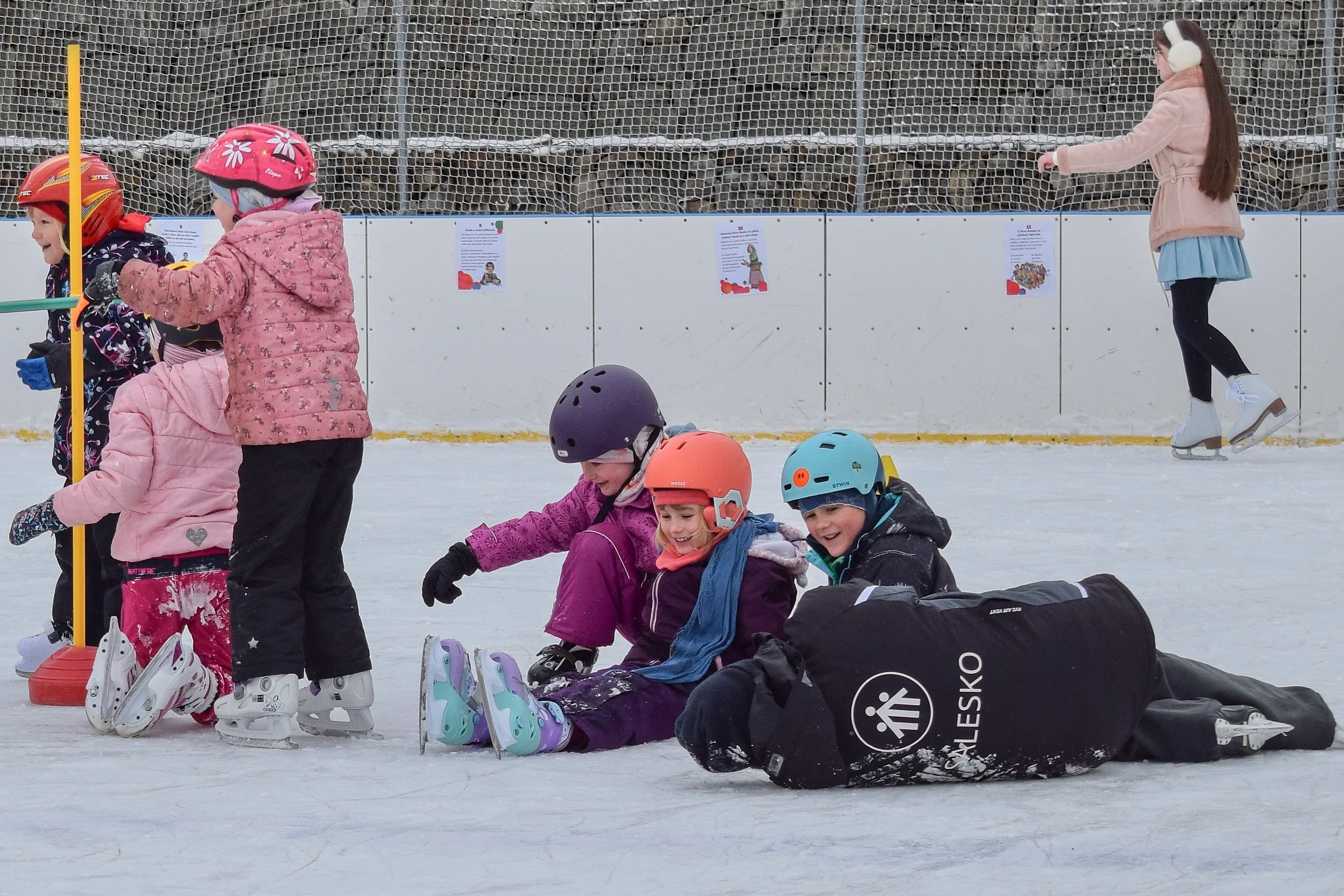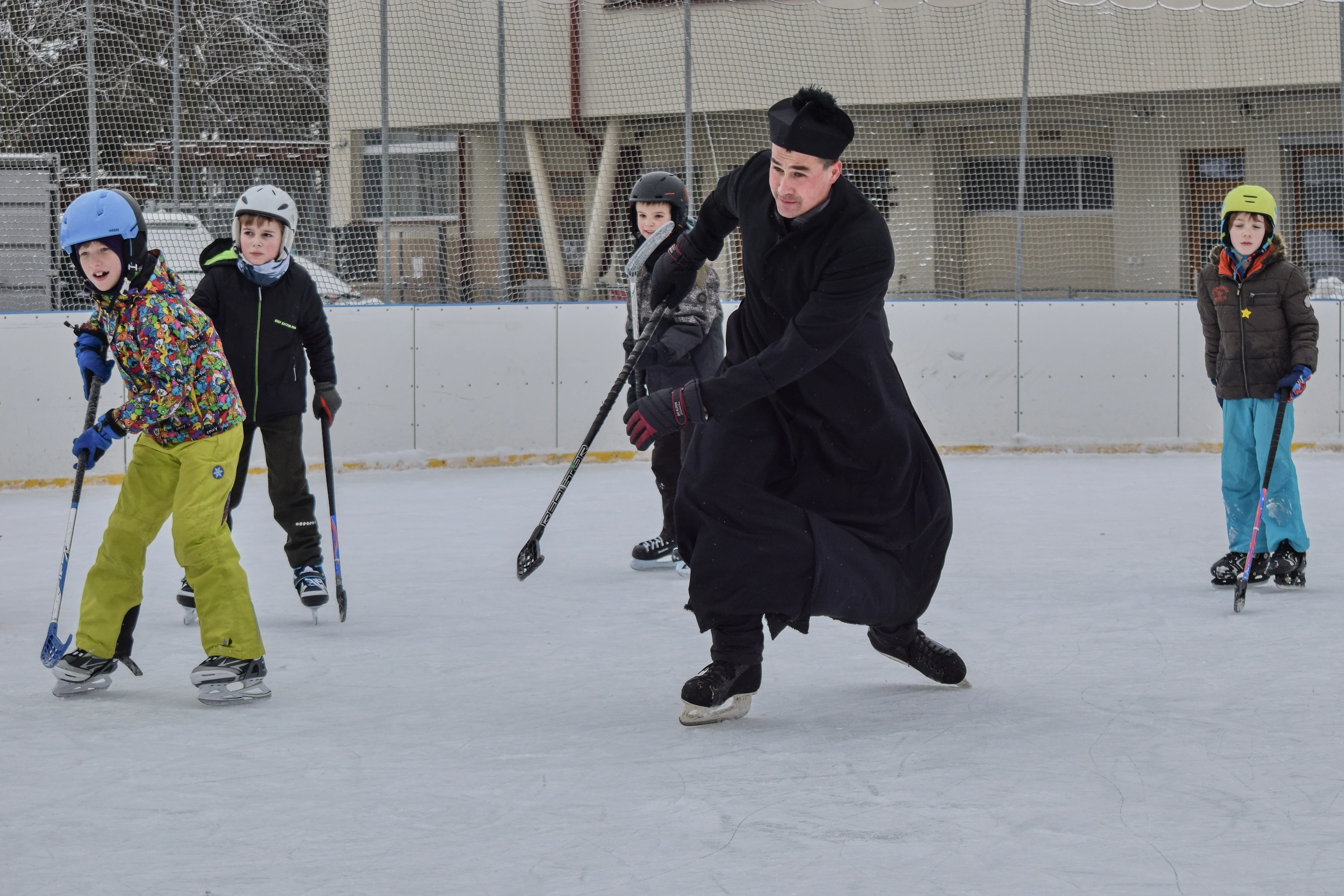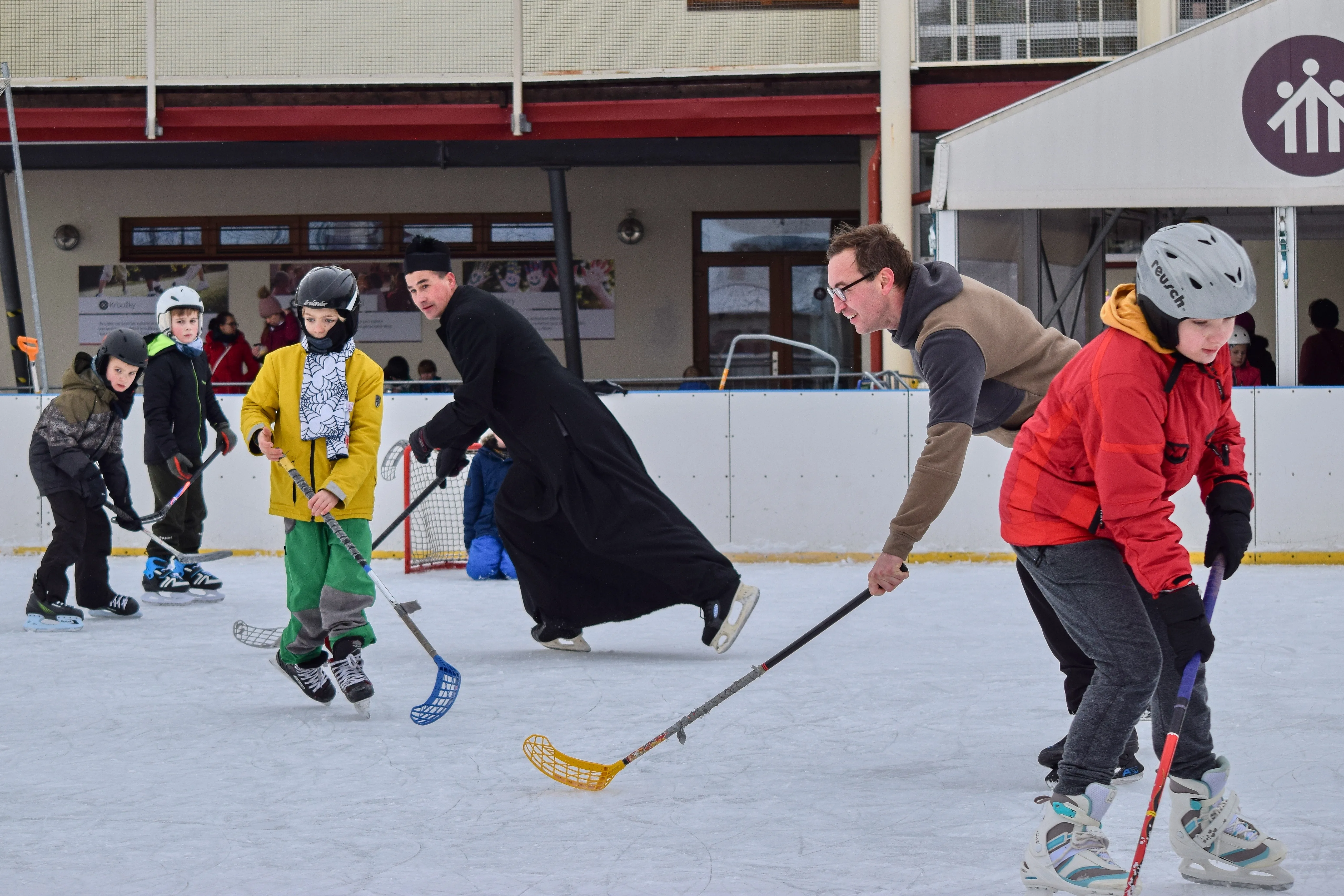 Obouváme brusle a vyrážíme na led. Po pár kolečkách Don Bosco svolává děti, vítá je a tentokrát se role prohazují – otázky dává on dětem. Věděli byste vy správné odpovědi? „Kdy se narodil Don Bosco?“ Snad za a) – Nikdy se nenarodil, je to fiktivní postava. „Jaké povolání měl Don Bosco? Možná že za e) – Zvoník, přezdívku Don měl podle zvuku zvonů. „V jakých médiích oslovoval dárce?“ To bude za d) – Stal se z něho youtuber. Takto jste odpovídali? Tak to máte všechno špatně! Zato děti na kluzišti ukázaly, že Dona Boska dobře znají, a odpovídaly správně. A teď už se pouštíme do volného bruslení, veselých her a dramatického hokejového zápasu.