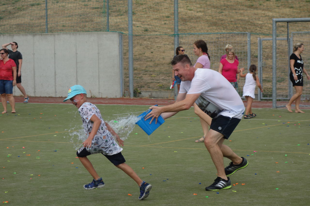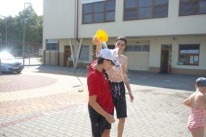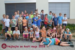 Předposlední prázdninový týden se nesl v duchu sportovního tábora s názvem „Hejbejte se kosti moje“. Jelikož se nám vrátily horké letní dny, program se upravil vodním radovánkám, které nás provázely celý týden. Čtyři různě barevná družstva s celkovým počtem 36 účastníků proti sobě bojovalo se zápalem a týmovým duchem. V úterý nás navštívily Milanovy aktivity a kvízy, se kterými jsme prožili zábavné odpoledne s programem DOBRODRUH, kde družstva bojovala na stanovištích (střelba z luku, z foukačky, bodyzorby, společenská hra nebo přecházení přes lanové aktivity). Mělo to však háček. Zúčastnit stanoviště se mohl pouze jeden či dva z týmu a ostatní pouze fandili. I mozkové a tvořivé závity jsme nenechali v takto teplém počasí odpočívat a prožili dopoledne s tvořivou hrou, kde jsme vyráběli žárovku, letadlo, prak a nůžky. Další týmy měly poznat náš výrobek a popsat krok po kroku, jak se předmět vyráběl. Poslední výměna týmů měla vyrobit stejný předmět podle přiloženého návodu. Podobnost u některých byla velmi identická, některé týmy však zapojily svoji fantazii a vznikl tak výrobek úplně jiný. Ukončení tábora se neslo v duchu velké vodní bitvy proti rodičům. I když jsme podle naždímané vody z triček vyhráli, vyhlásili jsme remízu a vyzvali rodiče na příští rok. Moc děkujeme za účast rodičů a doufáme, že se sejdeme v hojném počtu i příští rok. Jana s týmem