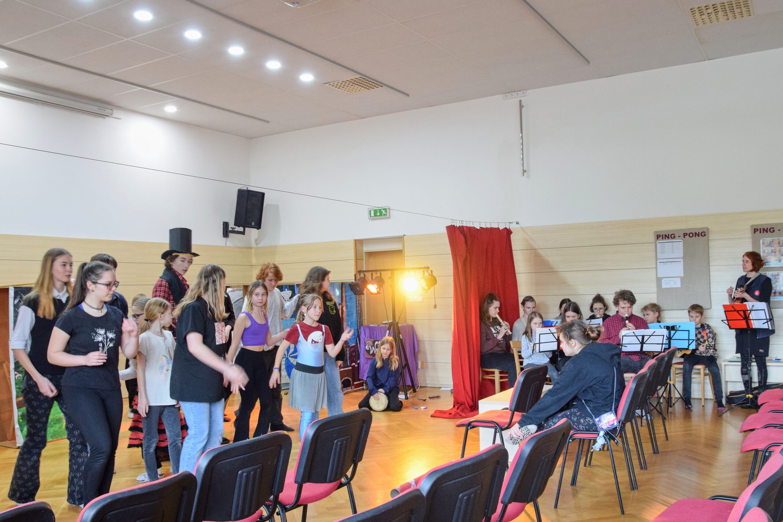 Děti z dramatického a hudebního kroužku si od začátku školního roku pilně připravovaly muzikál a jeho část pak předvedly na vánočním vystoupení. Celý muzikál „Karlík a továrna na čokoládu“ se nám podařilo úspěšně nacvičit a v pondělí 3. dubna měl premiéru pro diváky.
