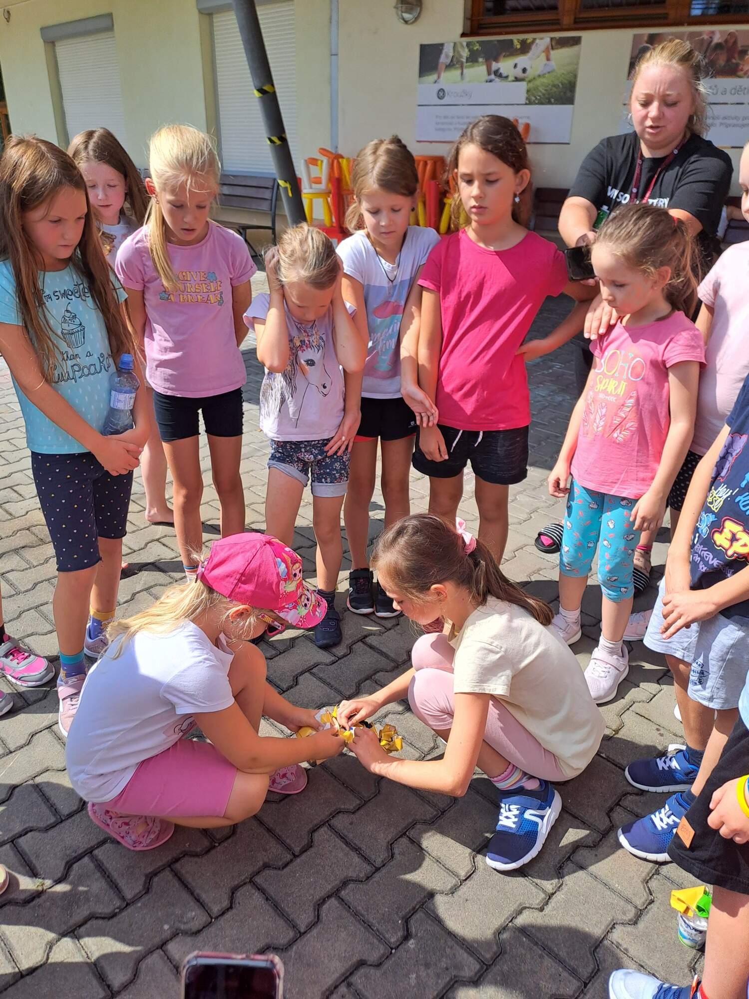 Kromě keramiky měly možnost si vytvořit vlastní originální batikované tričko a vyrobit ručně malované kamínky. Během tábora si účastníci zahráli spoustu tradičních i netradičních her. Vyzkoušeli si také míčové sporty, z kterých je nejvíce oslovil fotbal. Příležitost dostali i tací, kteří jsou stavitelé, protože měli možnost v rámci hry postavit vzduchový balón a tím zachránit svého skokana. Ve středu se konal výlet do zoologické zahrady Brno, kde děti mohly na vlastní oči vidět zvířata z celého světa. Největší senzací pro všechny malé návštěvníky Zoo však byli pávi, kteří se pohybovali volně areálem. Na konci týdne děti překvapily všechny vedoucí, když využily své šance utvořit drobný program. Celý týden panovala příjemná a přátelská atmosféra. V rámci tábora si děti i vedoucí užili spoustu legrace nejen díky soutěži o nejbláznivější ponožky. Jitka Bečvářová