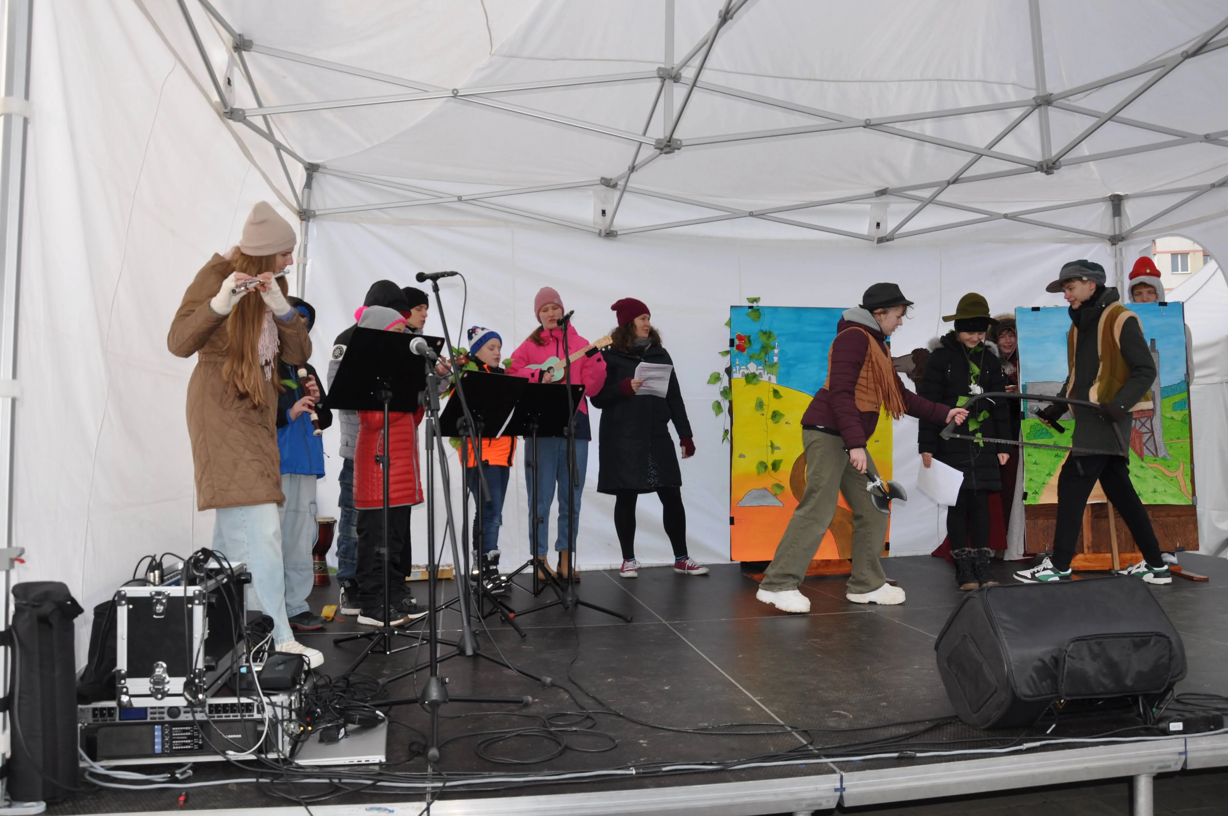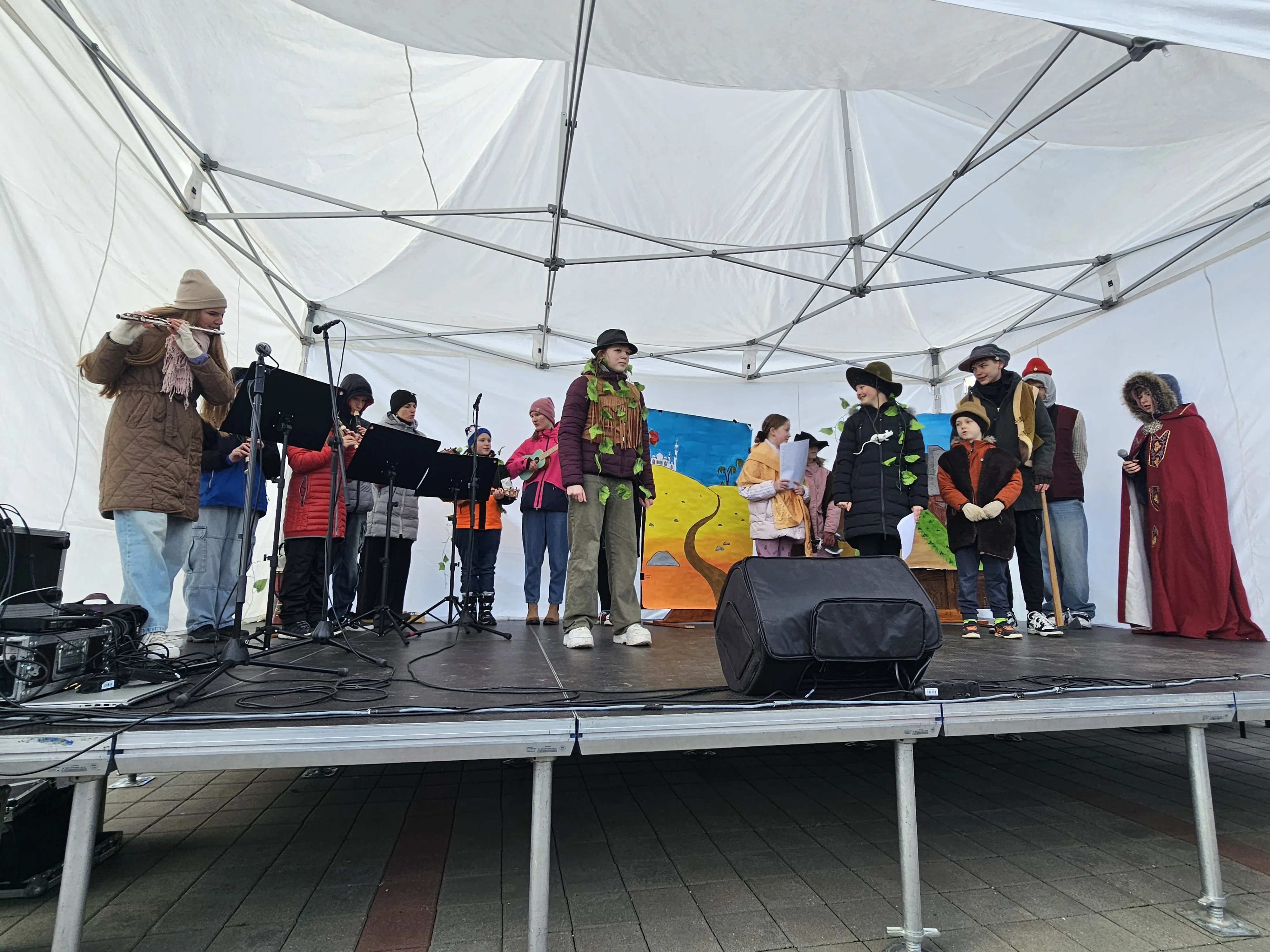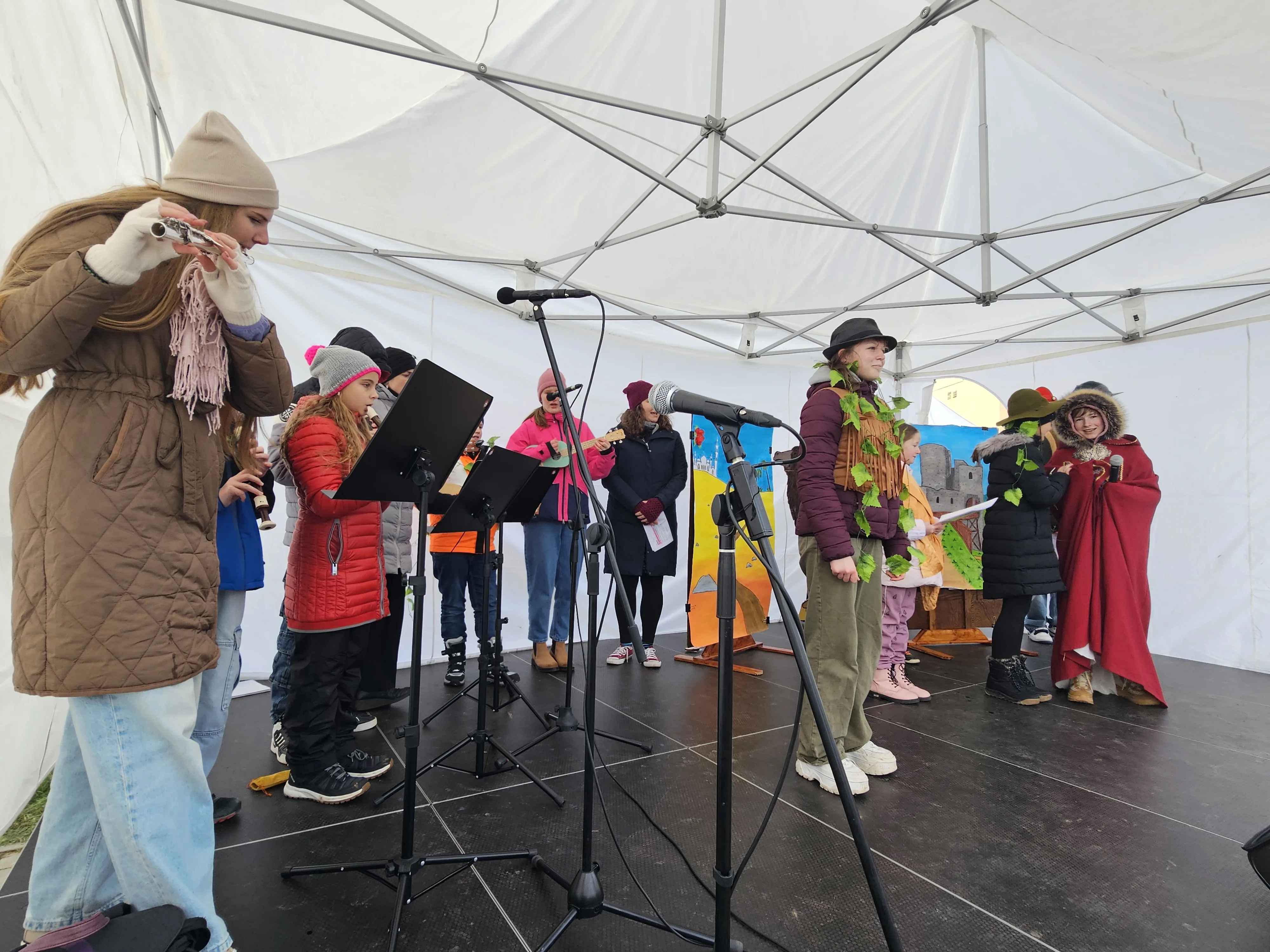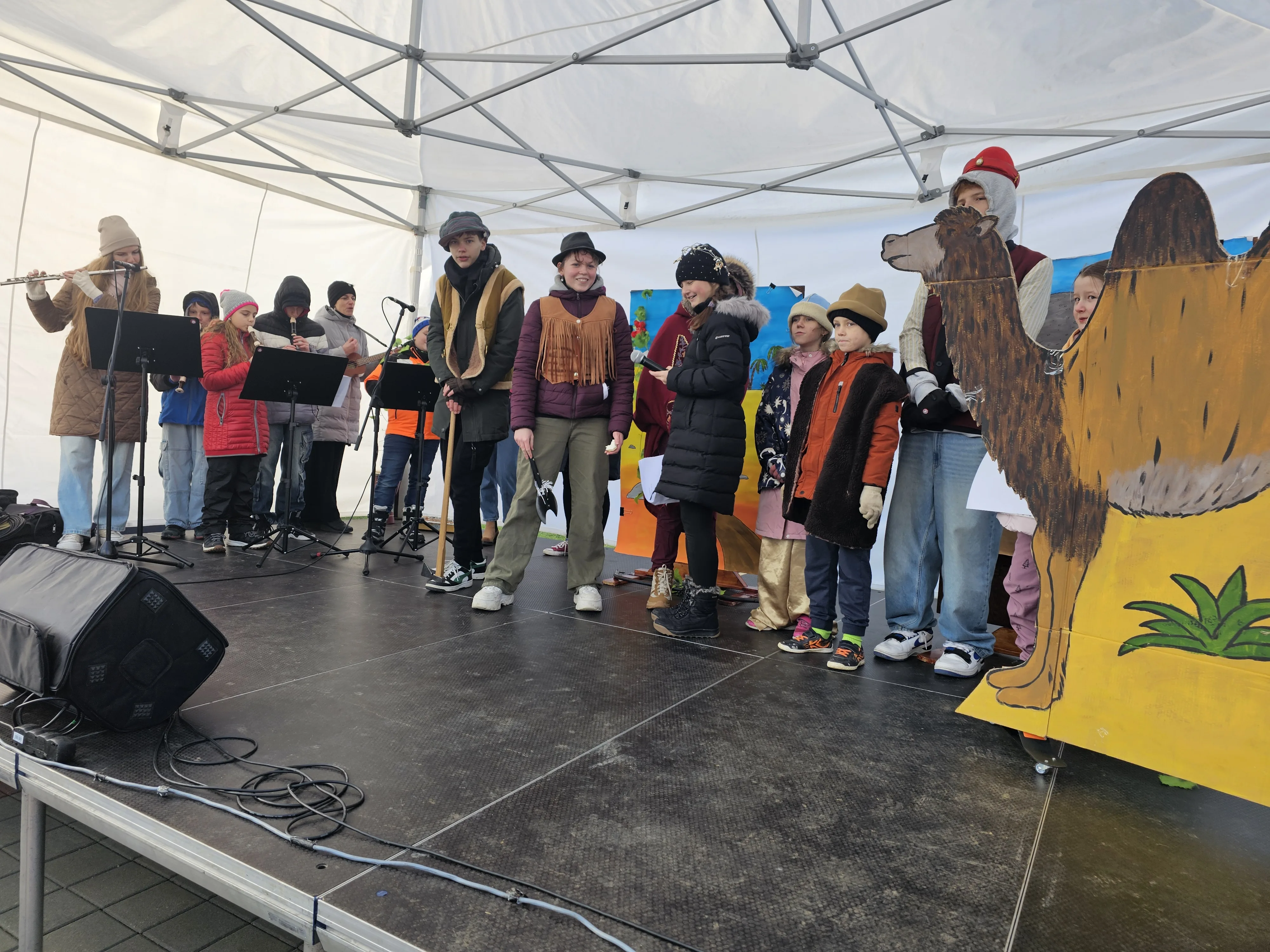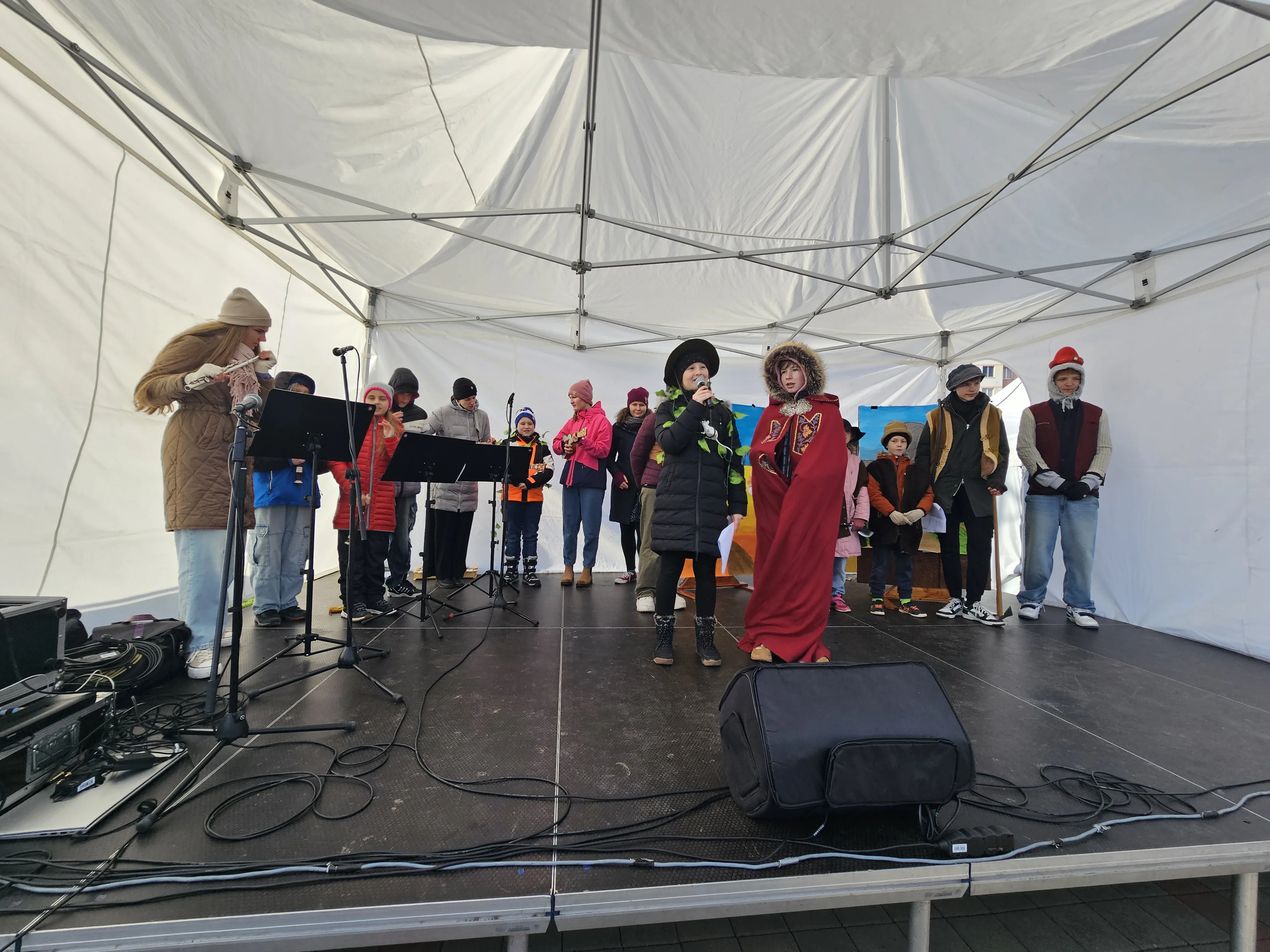 V rámci akce „Na trhu s talentem“, pořádané pod hlavičkou radnice, dostaly děti možnost ukázat, co v nich je. Program otevřel Salesko Band a hned poté se představily děti z hudebních kroužků hrou na flétnu, ukulele a klavír. Taneční energii přinesly tanečnice z Primary Dance Squad a o závěr se postaraly děti z Dramaťáku se zkrácenou verzí oblíbeného muzikálu Lotrando a Zubejda. Známé písně si s chutí zazpívali všichni přítomní. Slunečné počasí vytvořilo příjemnou atmosféru a přilákalo spoustu diváků, přestože vystupujícím občas mrzly prstíky. Děti však vše zvládly s velkou odvahou a radostí. Za své úsilí byly odměněny teplým moštem, výbornými sušenkami – a hlavně obrovským potleskem publika, které ocenilo jejich šikovnost a nadšení.