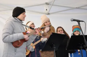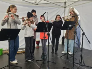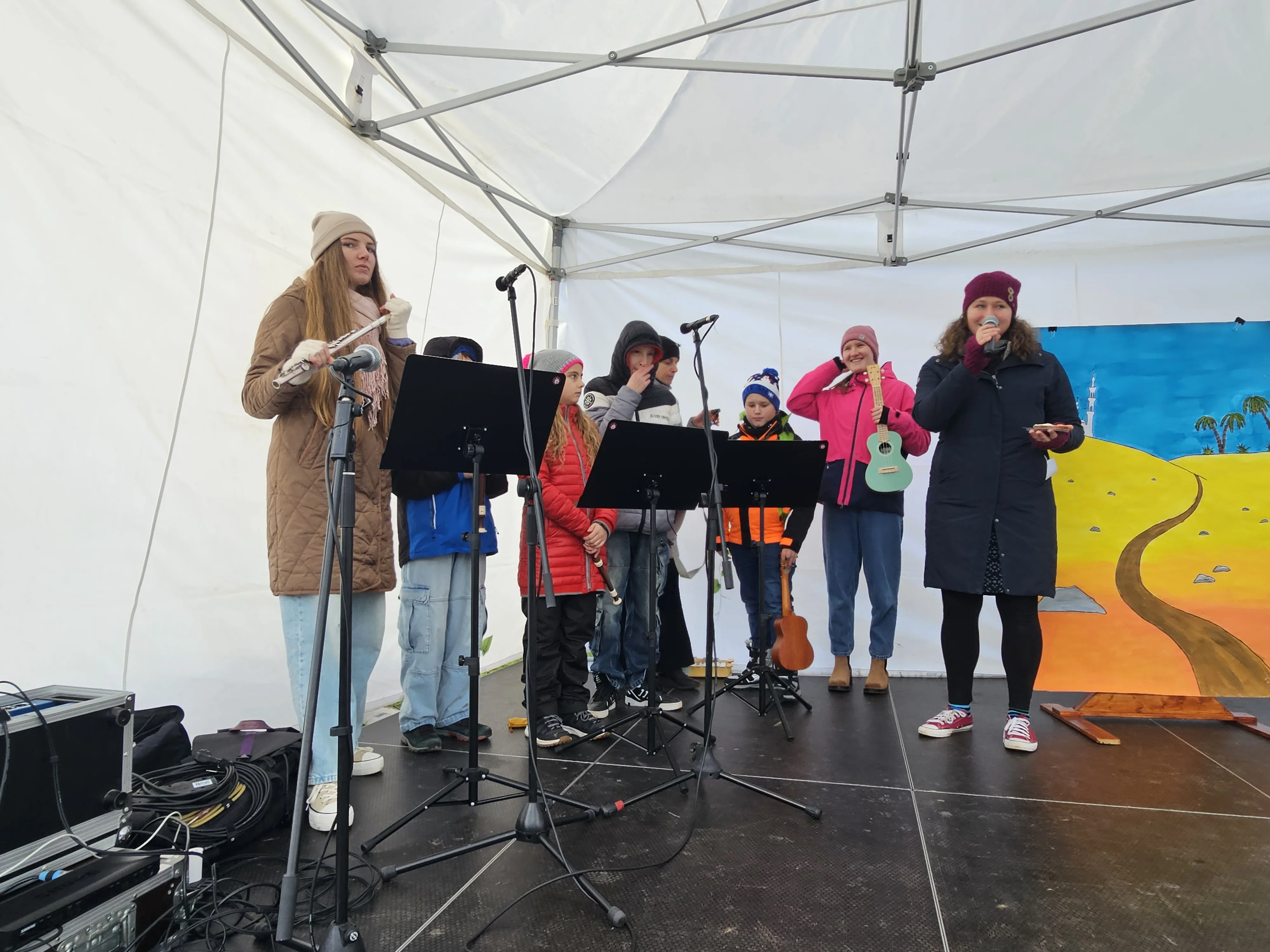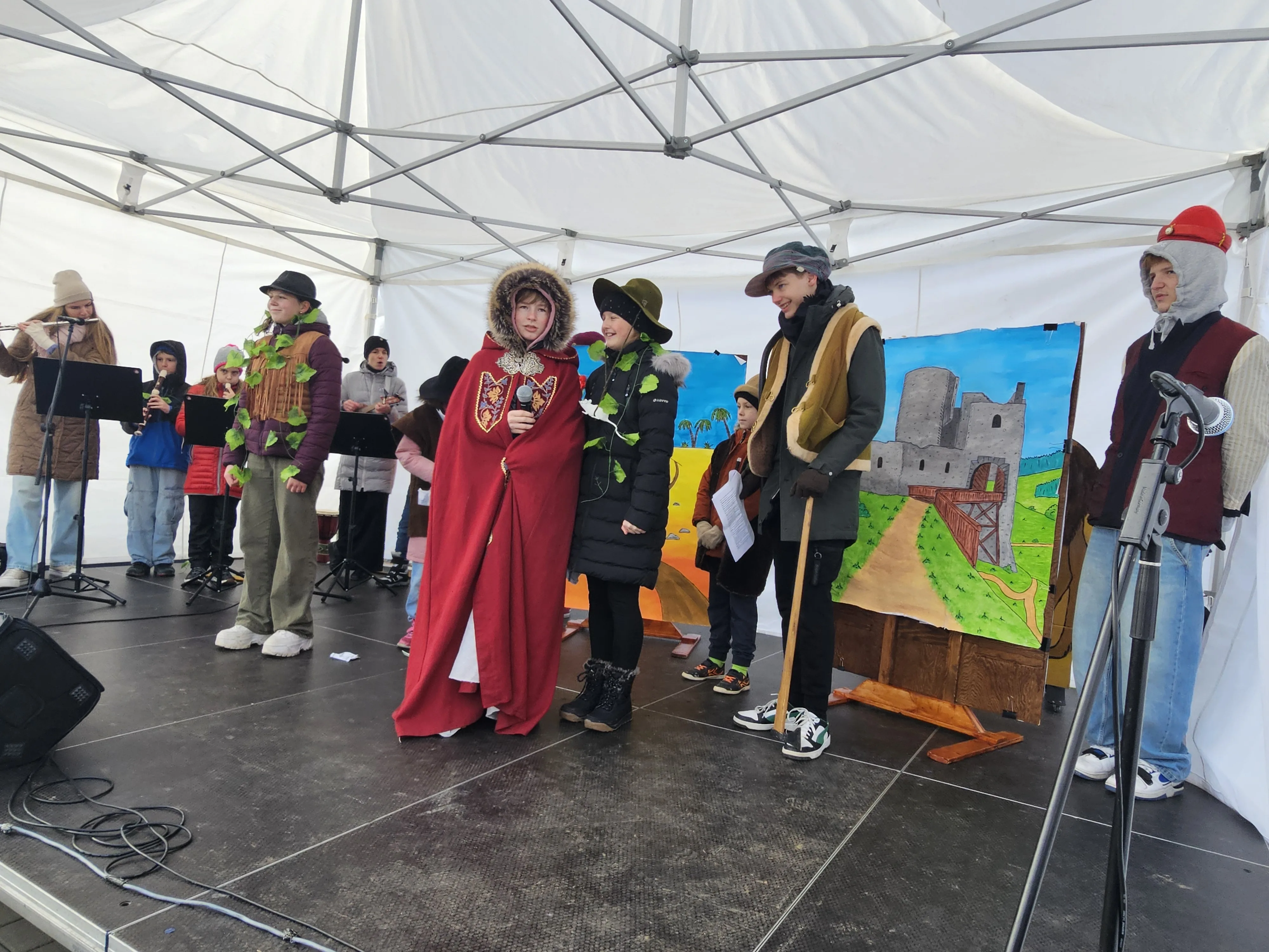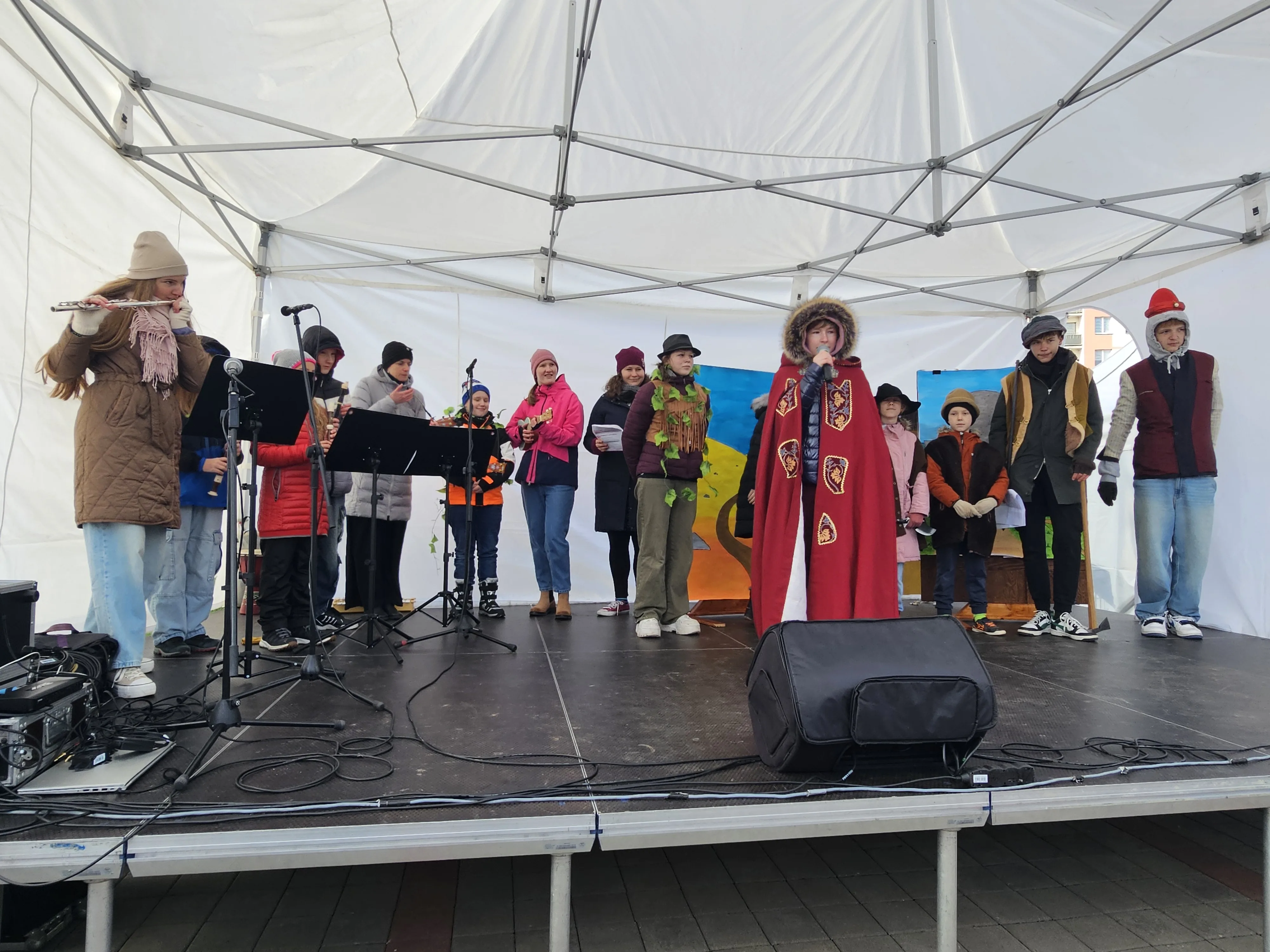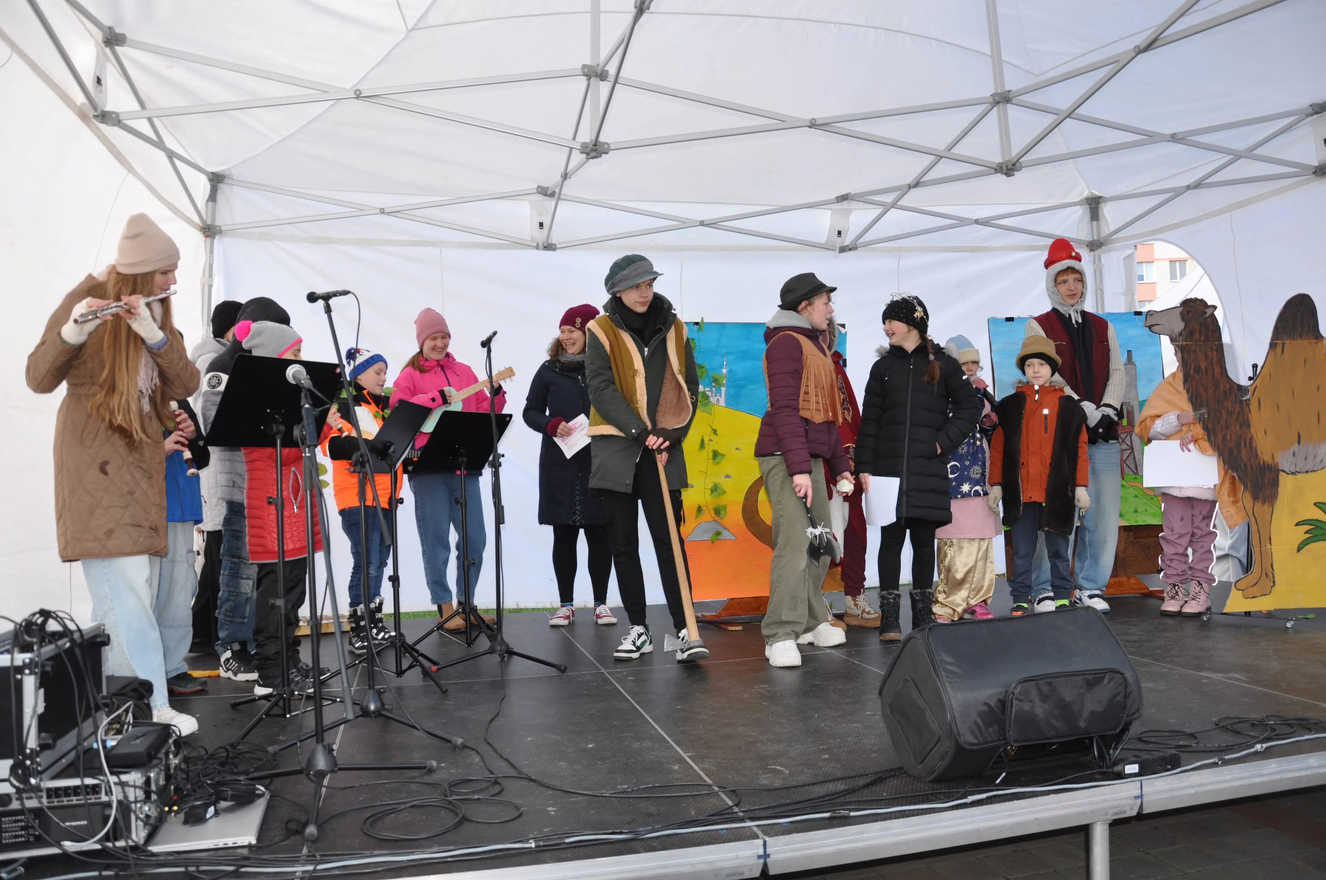 V rámci akce „Na trhu s talentem“, pořádané pod hlavičkou radnice, dostaly děti možnost ukázat, co v nich je. Program otevřel Salesko Band a hned poté se představily děti z hudebních kroužků hrou na flétnu, ukulele a klavír. Taneční energii přinesly tanečnice z Primary Dance Squad a o závěr se postaraly děti z Dramaťáku se zkrácenou verzí oblíbeného muzikálu Lotrando a Zubejda. Známé písně si s chutí zazpívali všichni přítomní. Slunečné počasí vytvořilo příjemnou atmosféru a přilákalo spoustu diváků, přestože vystupujícím občas mrzly prstíky. Děti však vše zvládly s velkou odvahou a radostí. Za své úsilí byly odměněny teplým moštem, výbornými sušenkami – a hlavně obrovským potleskem publika, které ocenilo jejich šikovnost a nadšení.