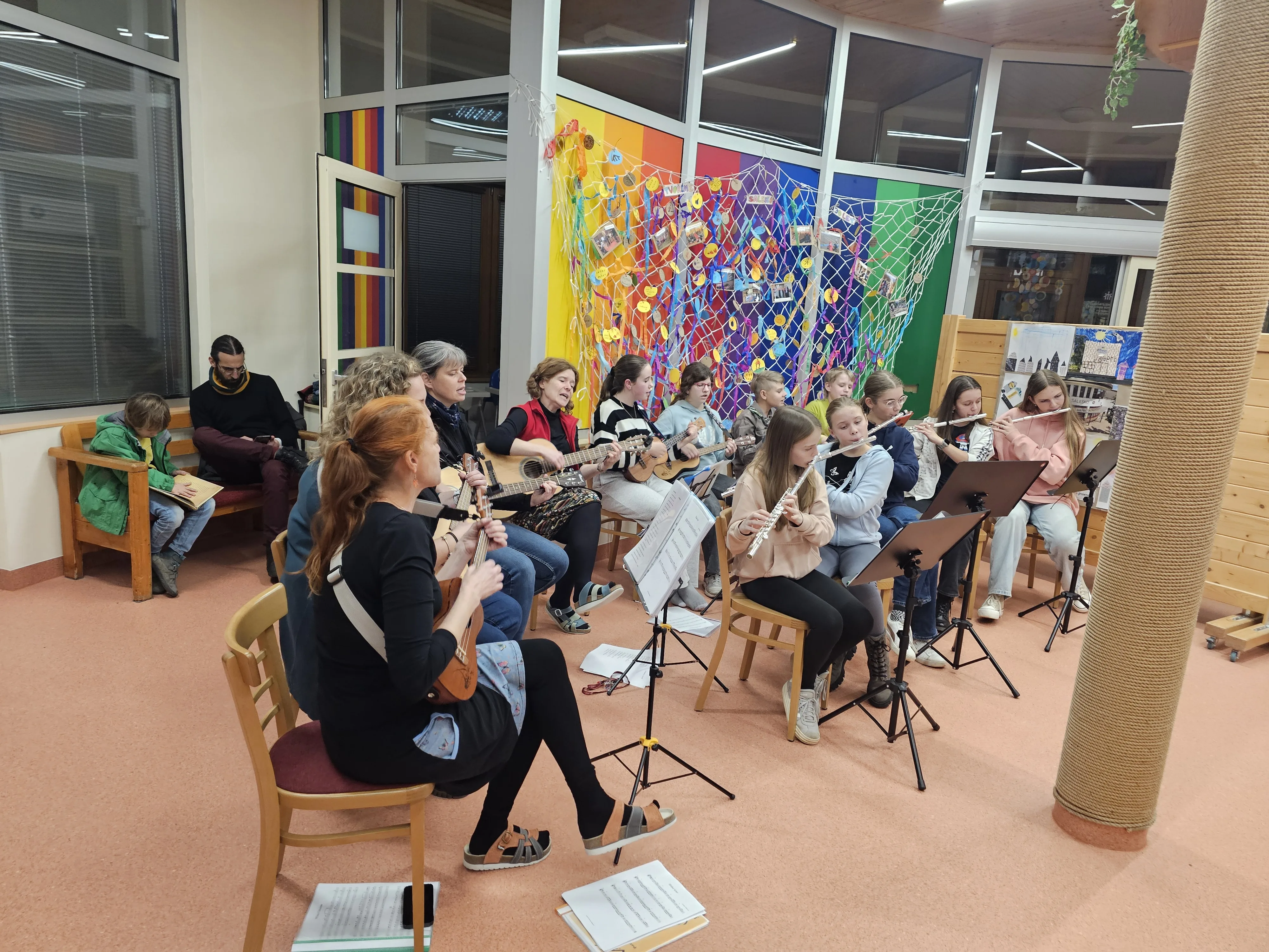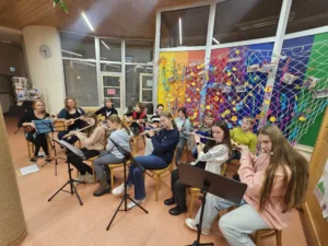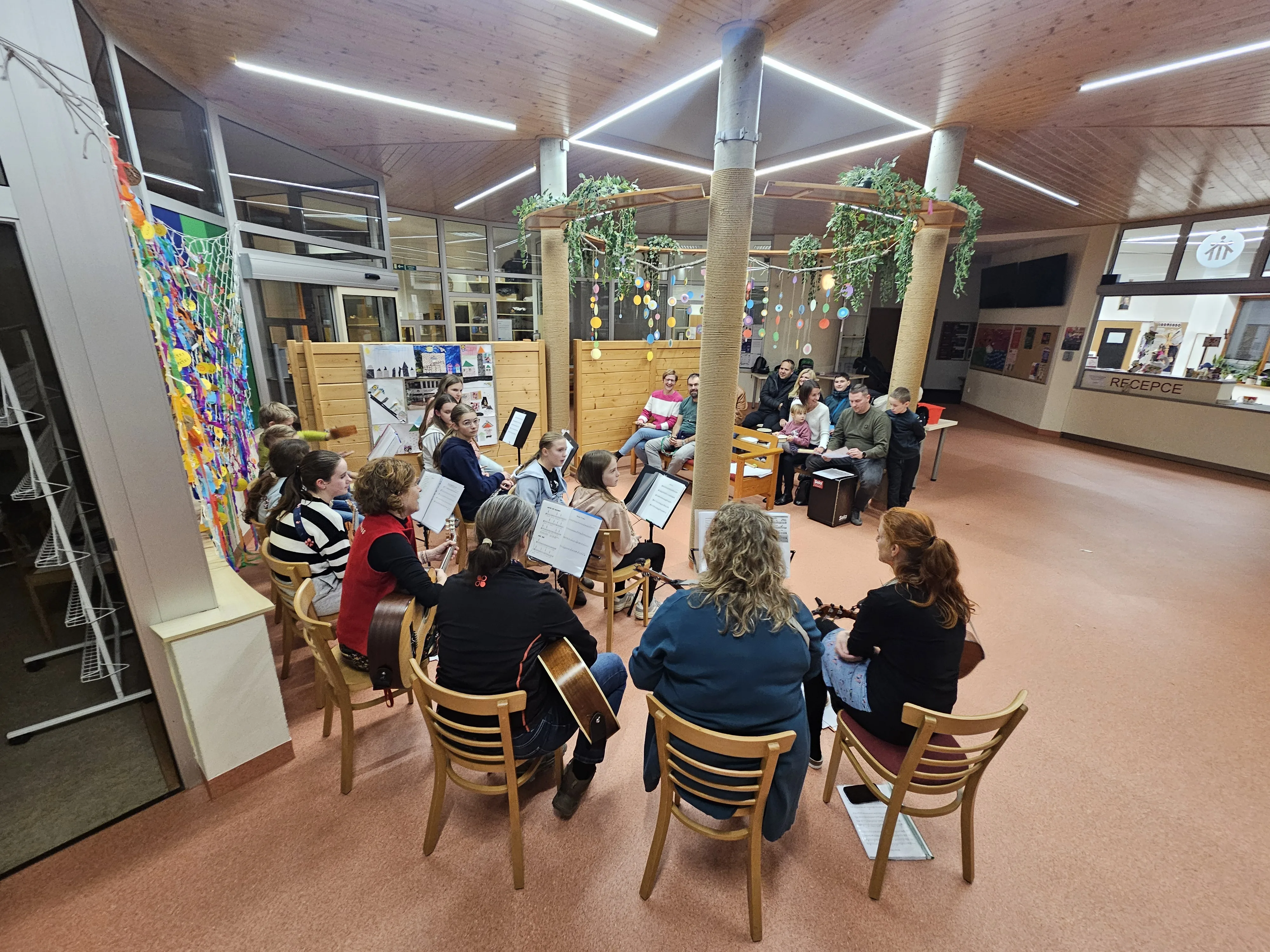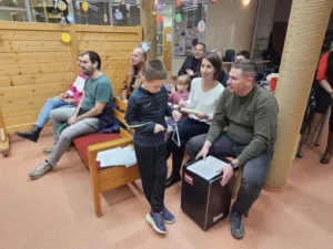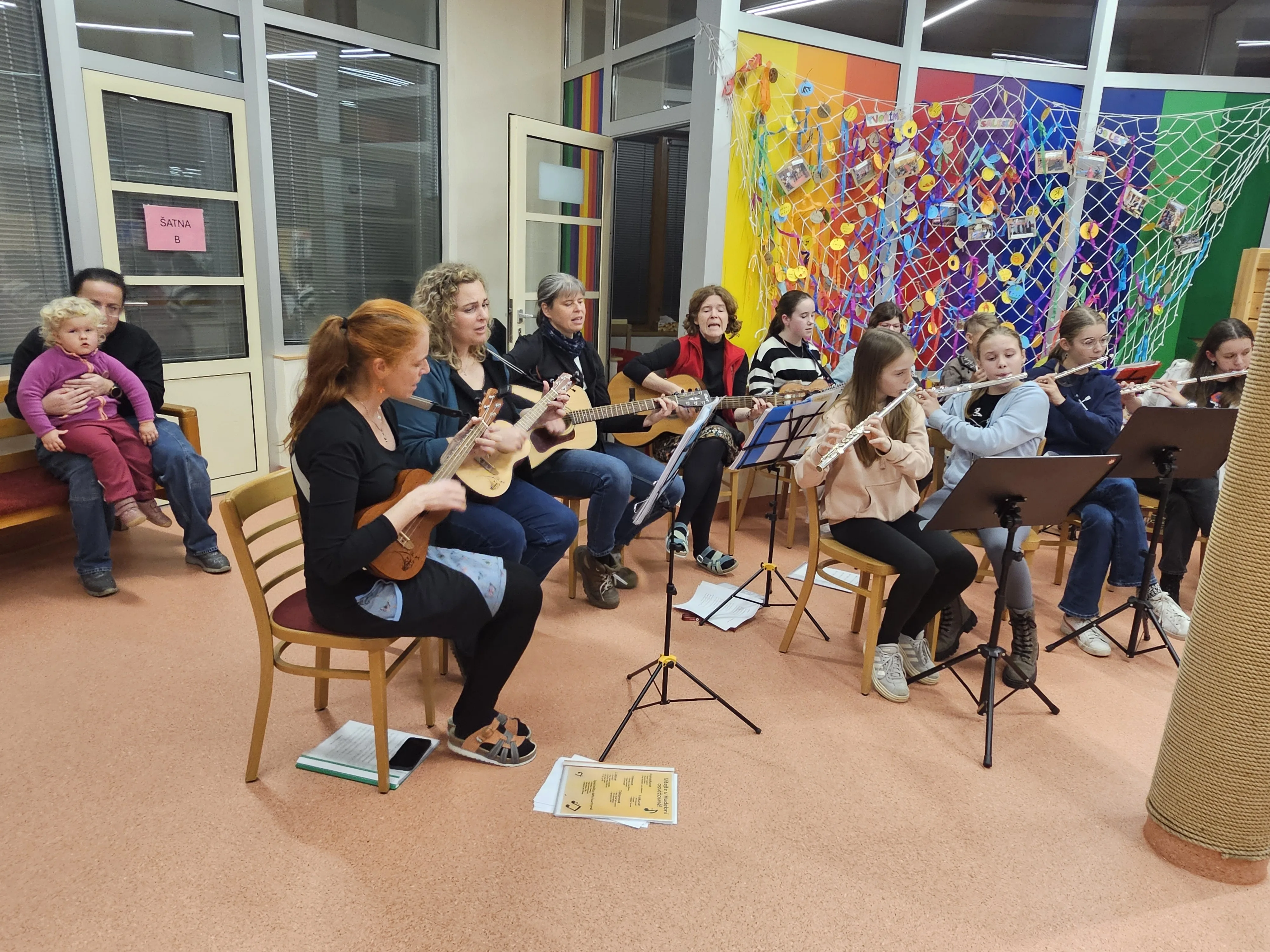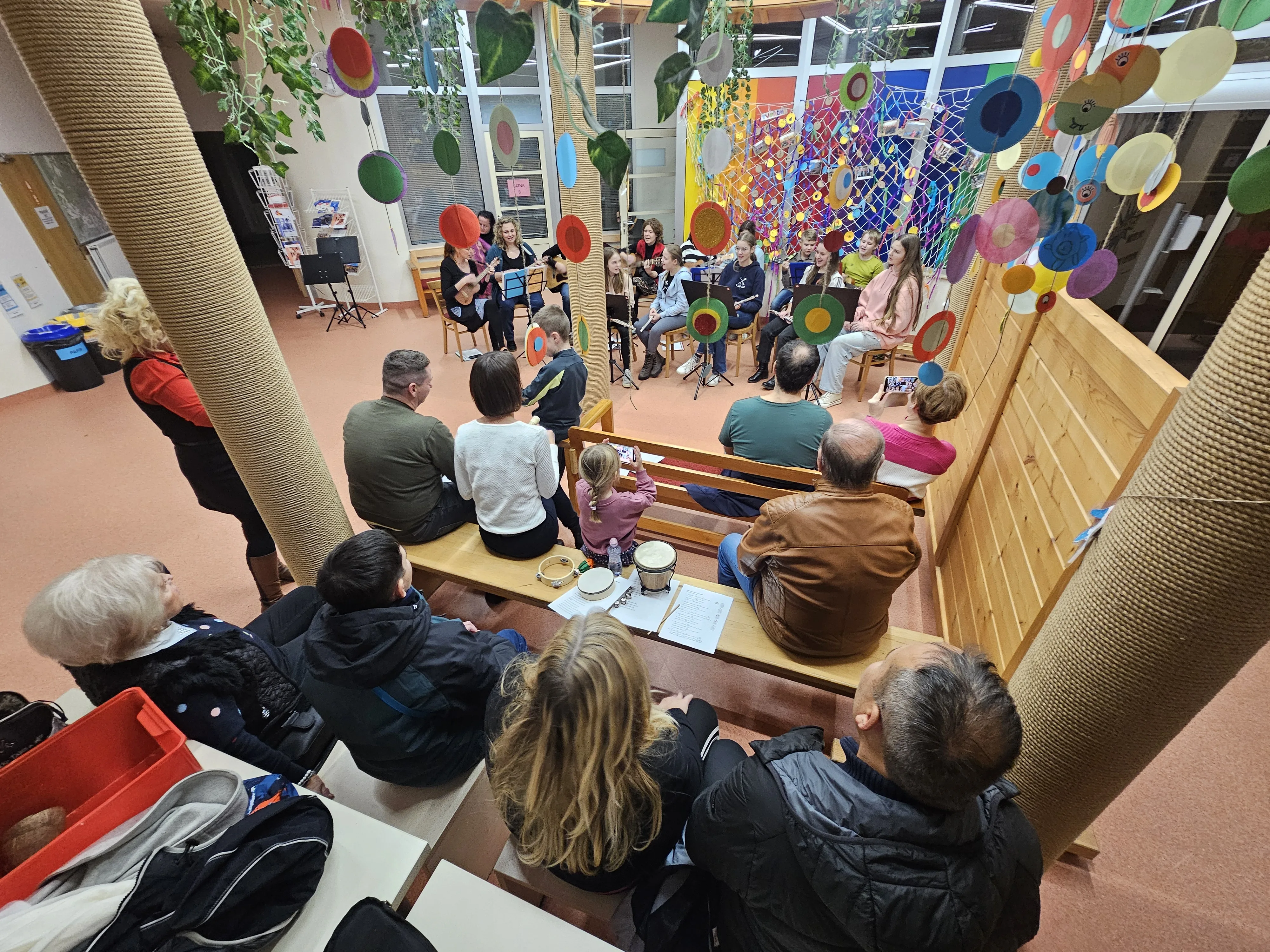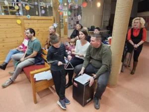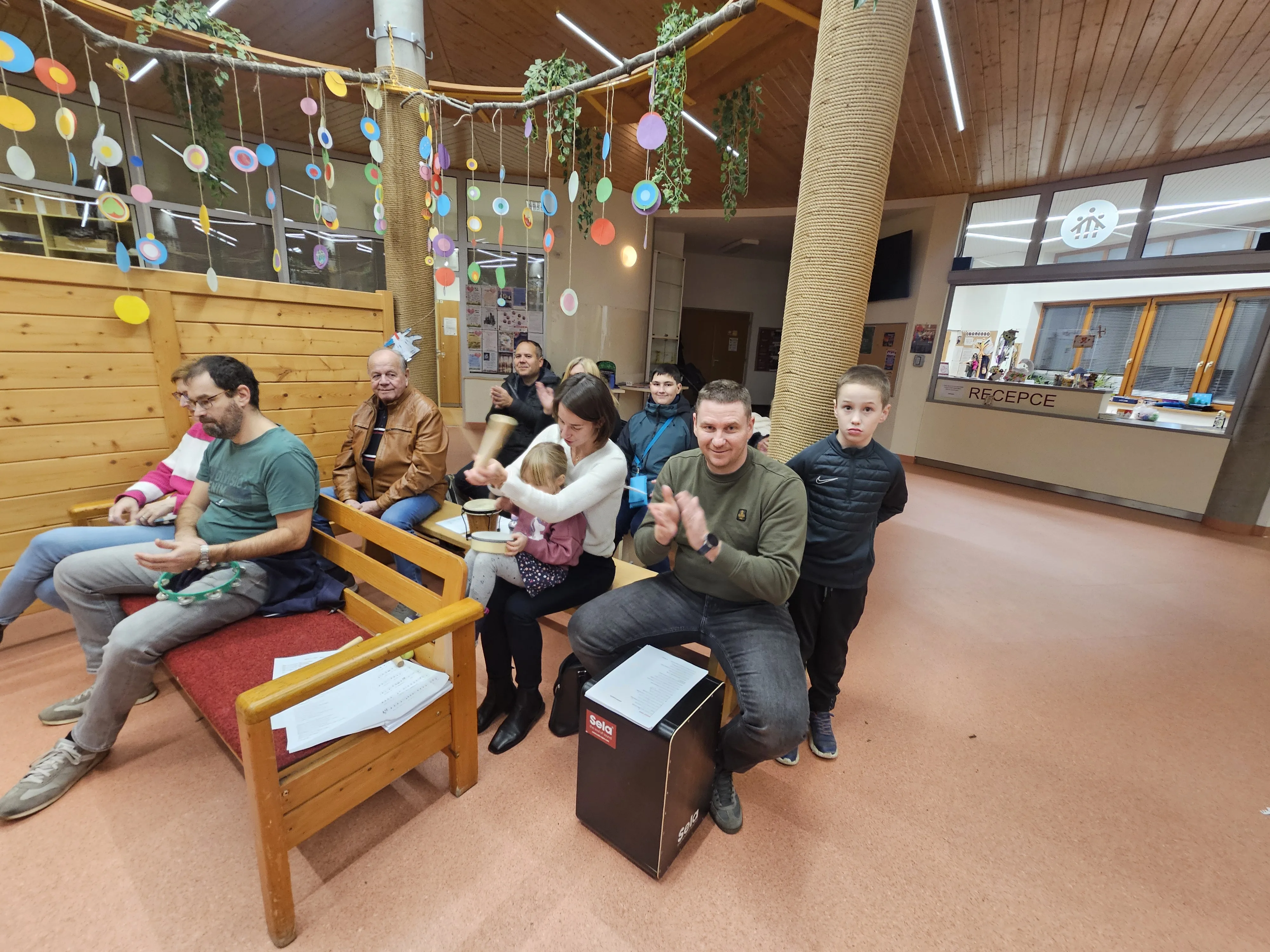 Sešla se bezva parta dětí, rodičů i prarodičů, která společně vytvořila radostnou a uvolněnou atmosféru. Nebyl to jen koncert, ale opravdová společná hudební jízda. Děti se s chutí pouštěly do svých oblíbených táborových a pohádkových hitů, zatímco dospělí je s úsměvem doprovázeli na perkusivní nástroje a různé rytmické pomůcky. Společné muzicírování vneslo do sychravého dne pořádnou dávku dobré nálady a připomnělo nám, jak málo stačí ke štěstí — být spolu, tvořit a radovat se z maličkostí. Podzimní Jam byl zároveň milým a hřejivým naladěním na blížící se Advent. Děkujeme všem, kteří přišli a pomohli vytvořit tak kouzelné hudební odpoledne.