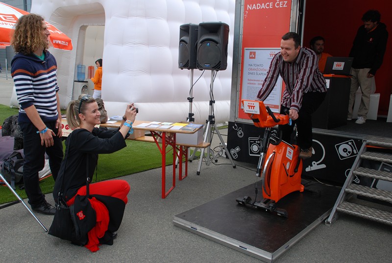 Vedle poslechu těch nejlepších kapel současné české a slovenské hudební scény, mohli diváci šířit pozitivní energii také na Oranžovém kole Nadace ČEZ. Každý návštěvník měl možnost strávit na kole jednu minutu a svým výkonem přispět na dobročinný účel. „Jsme rádi, že si tolik mladých lidí nenechalo ujít příležitost podpořit dobrou věc a kromě zábavy si našli čas roztočit pedály našich charitativních kol,“ uvedla Jana Štefánková, specialistka komunikace z Jaderné elektrárny Dukovany. „Do sedla nadačního kola zasedl i přeborník v jízdě na historickém kole Josef Zimovčák, ale také moderátor Majálesu Jakub Kohák,“dodává Jana Štefánková.