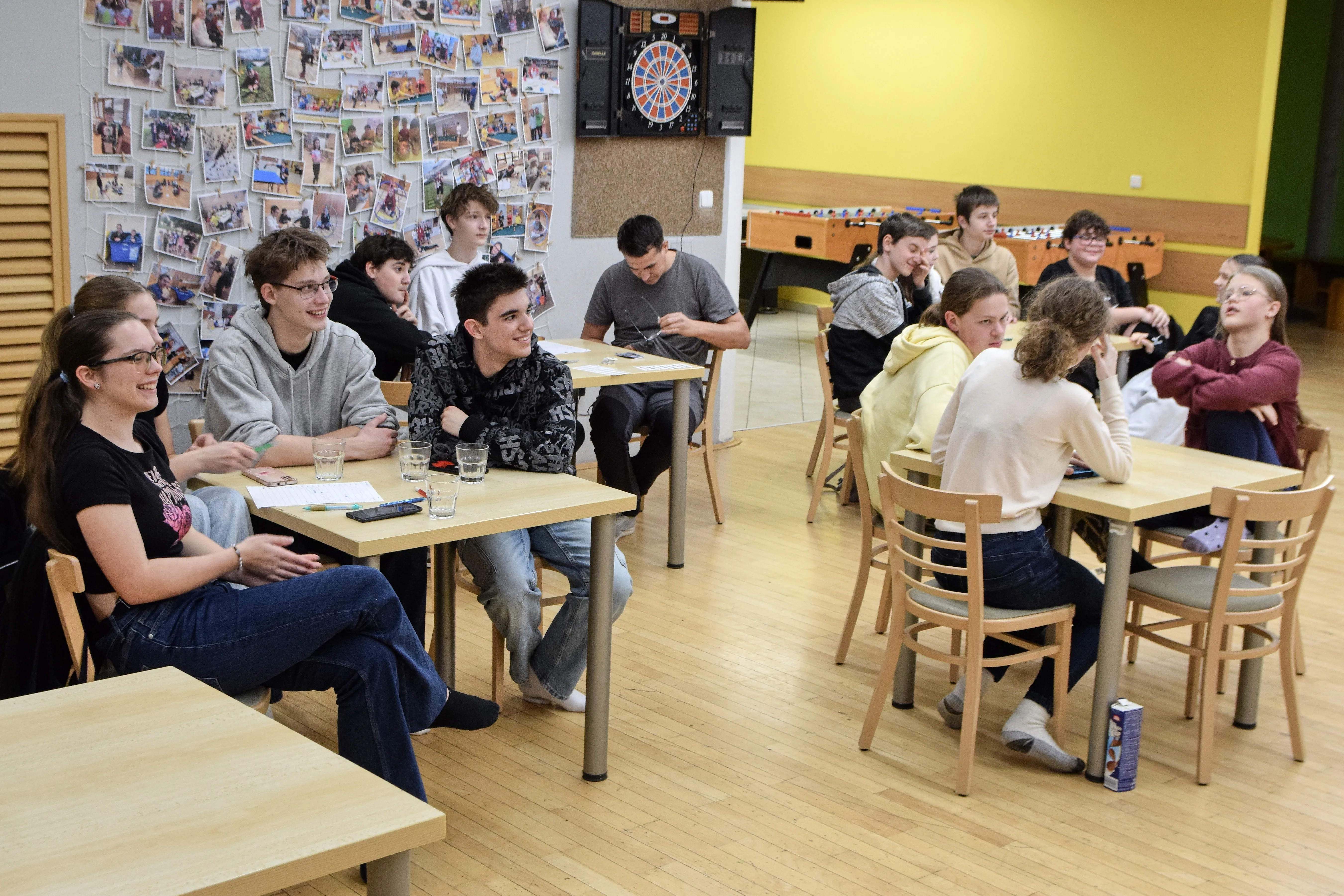 Do soutěže se zapojily čtyři týmy, složené z dětí z Klubu VeSPOD i z různých kroužků, jako je dramaťák, ping pong, kinball nebo badminton. Týmy o 2–6 hráčích si poměřily síly v celkem šesti tematických okruzích. Otázky se týkaly nejen Dona Boska, ale také České republiky, ročních období a etikety. Nechyběla Mozkovna ani oblíbená Poznávačka, kde účastníci hádali loga firem, sportovní týmy, písně i hudební skladby. O hlad i žízeň bylo postaráno – vedoucí Lucka se s chutí ujala role klubové barmanky a po celý večer míchala drinky, které k soutěžní náladě neodmyslitelně patřily. Západ slunce, Rákosníček nebo Pískoviště mizely z pultu stejně rychle jako správné odpovědi z papírů, nechyběla ani klasická Kofola. Vítězem se stal tým Zuzky Plíškové, který si odnesl volňásky na kluziště. Odměnou ale nebyla jen výhra – podle reakcí si všichni si večer moc užili a odcházeli s úsměvem. Děkujeme všem, kteří dorazili, soutěžili a vytvořili skvělou atmosféru. Těšíme se na další společné akce v Klubu VeSPOD!