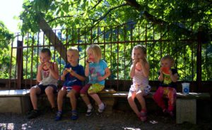 všichni společně slavili na šmoulí párty, kterou jsme zakončili společným opékání špekáčků. Šmoulí týden v Jeníkově utekl jako voda a do Brna se vracelo 25 unavených, ale