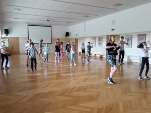 Začátek týdne byl náročnější, protože pár dětí bylo na našem táboře nedobrovolně a nechtěly tancovat. Postupem času tomu všichni dali šanci, a nakonec jsme se zvládli naučit dvě choreografie rozdělené a jednu choreografii společnou.