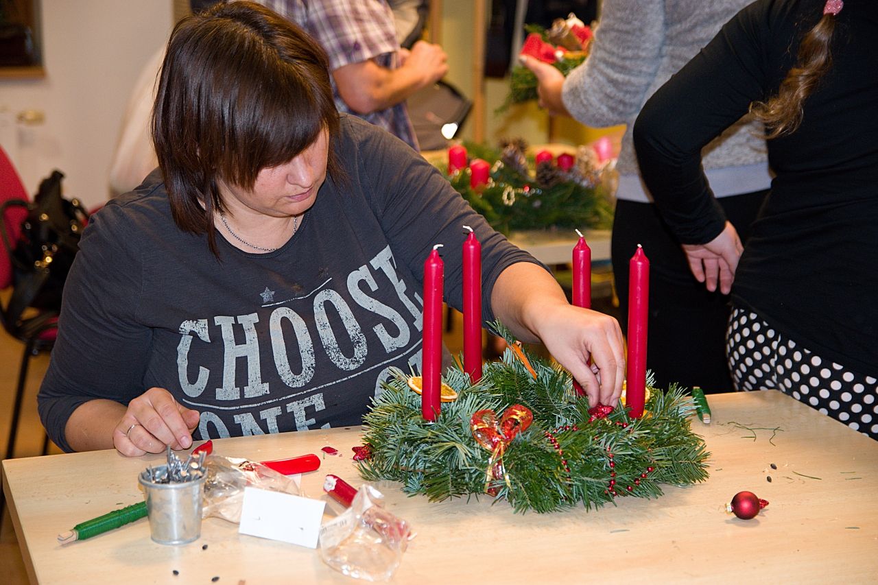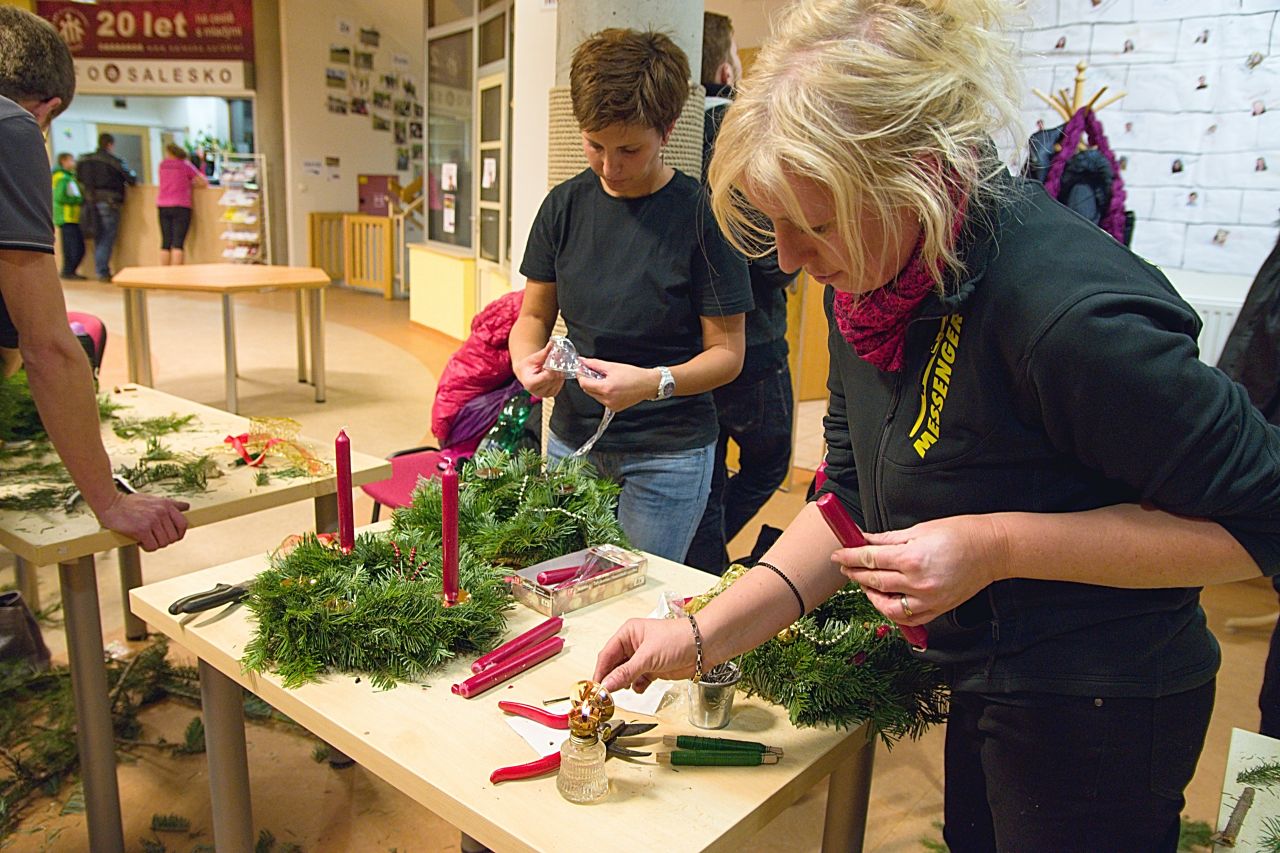 Již tradičně jsme se sešli v „Kulaťounu“ provoněném jehličím a sušenými pomeranči a pustili se pod vedením zkušené instruktorské dvojce Honzy Šidla a Janči Žákové do tvorby adventních věnců. Pod šikovnýma rukama nápaditých návštěvnic ale i návštěvníků vznikaly nádherné výtvory, které teď krášlí naše domovy a navodí nám jistě vánoční atmosféru plnou pohody.