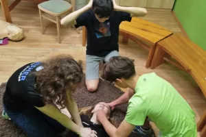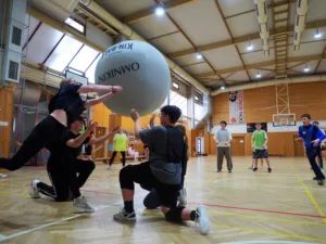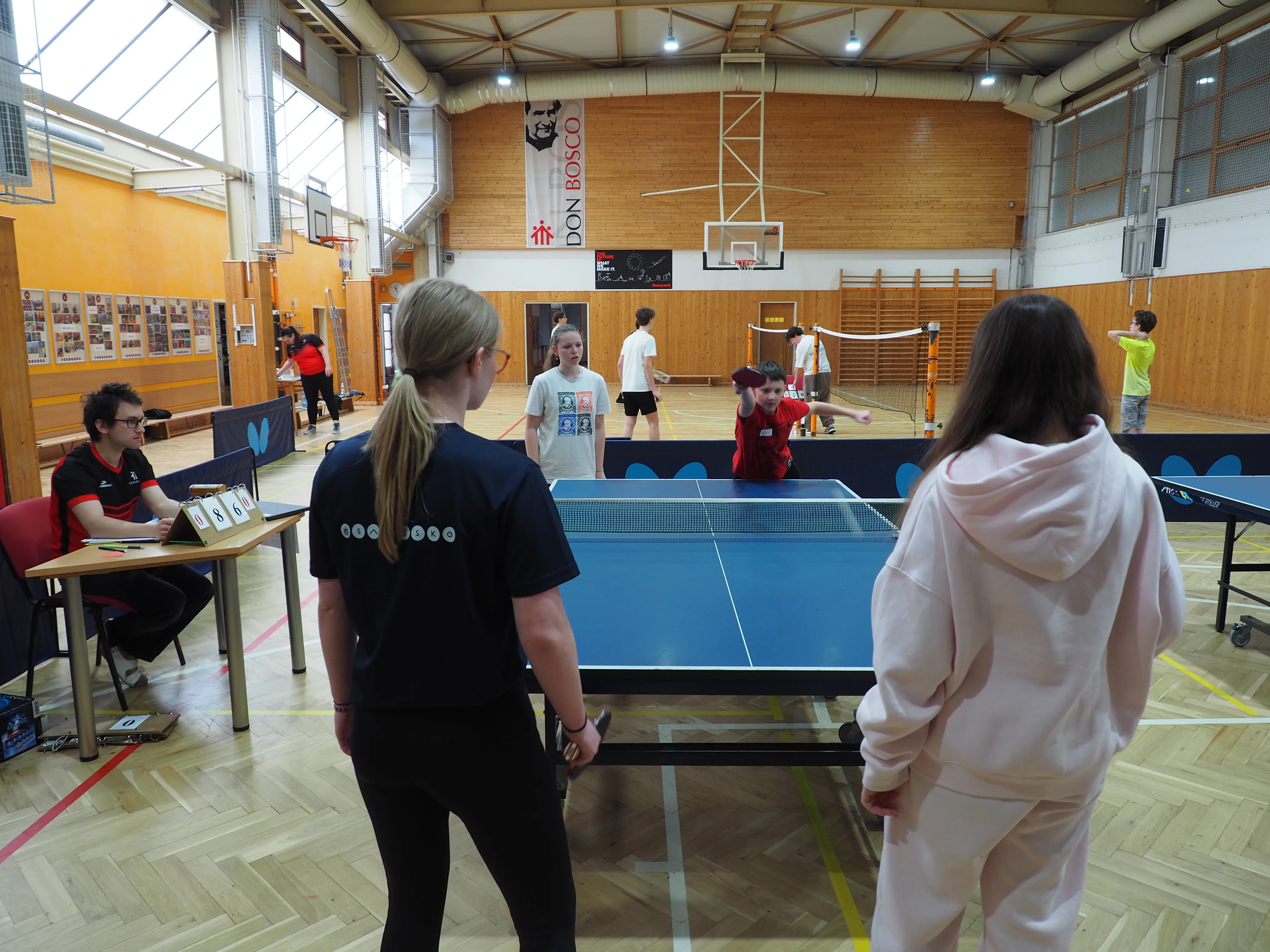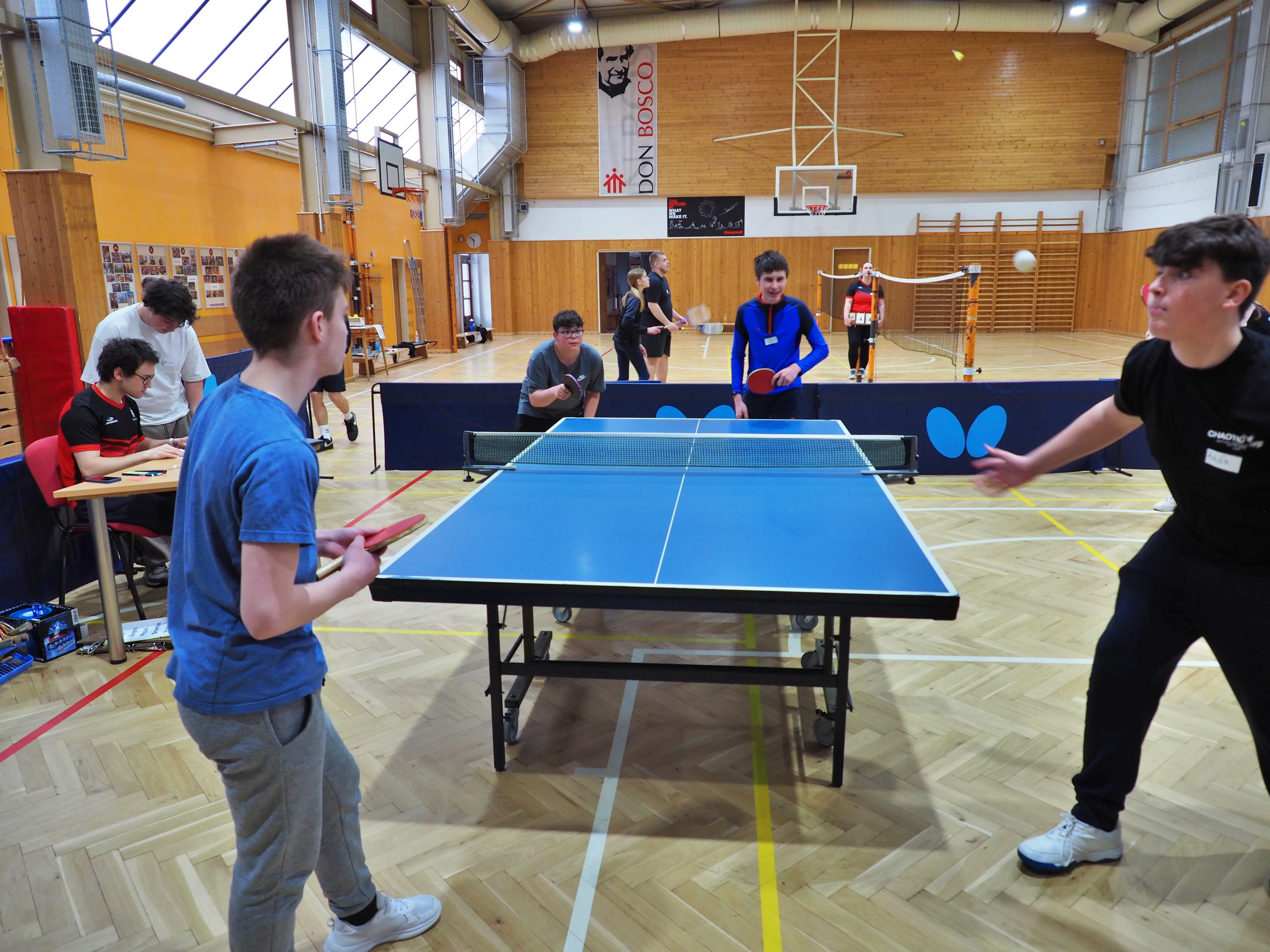 Na Zelený čtvrtek měli školou povinní povinné volno, ale ne všichni vyspávali. Ráno se v Salesku potkalo 23 účastníků starších dvanácti let a k tomu i 7 zaměstnanců. Několika seznamovacími hrami jsme rychle prolomili nesmělou atmosféru. Rozdělili jsme se do týmů po čtyřech, ve kterých se jednotliví členové neznali, ale každý byl dobrý v jedné z disciplín, ve kterých se měli v následujících devadesáti minutách utkat s ostatními týmy. Hra začala a družstva se rozutekla po Salesku. Navzájem měřili síly v badmintonu nebo stolním tenisu, v šipkách či stolním fotbálku, v týmech překonávali štafetu přes překážkovou dráhu, také zkoušeli úspěšnost při srdeční masáži naší Anči. Navíc plnili nejeden „side quest“ a získávali body i za to, když si vyzkoušeli co nejvíce disciplín. Salesko vibrovalo nadšenou soutěživou kamarádskou atmosférou.