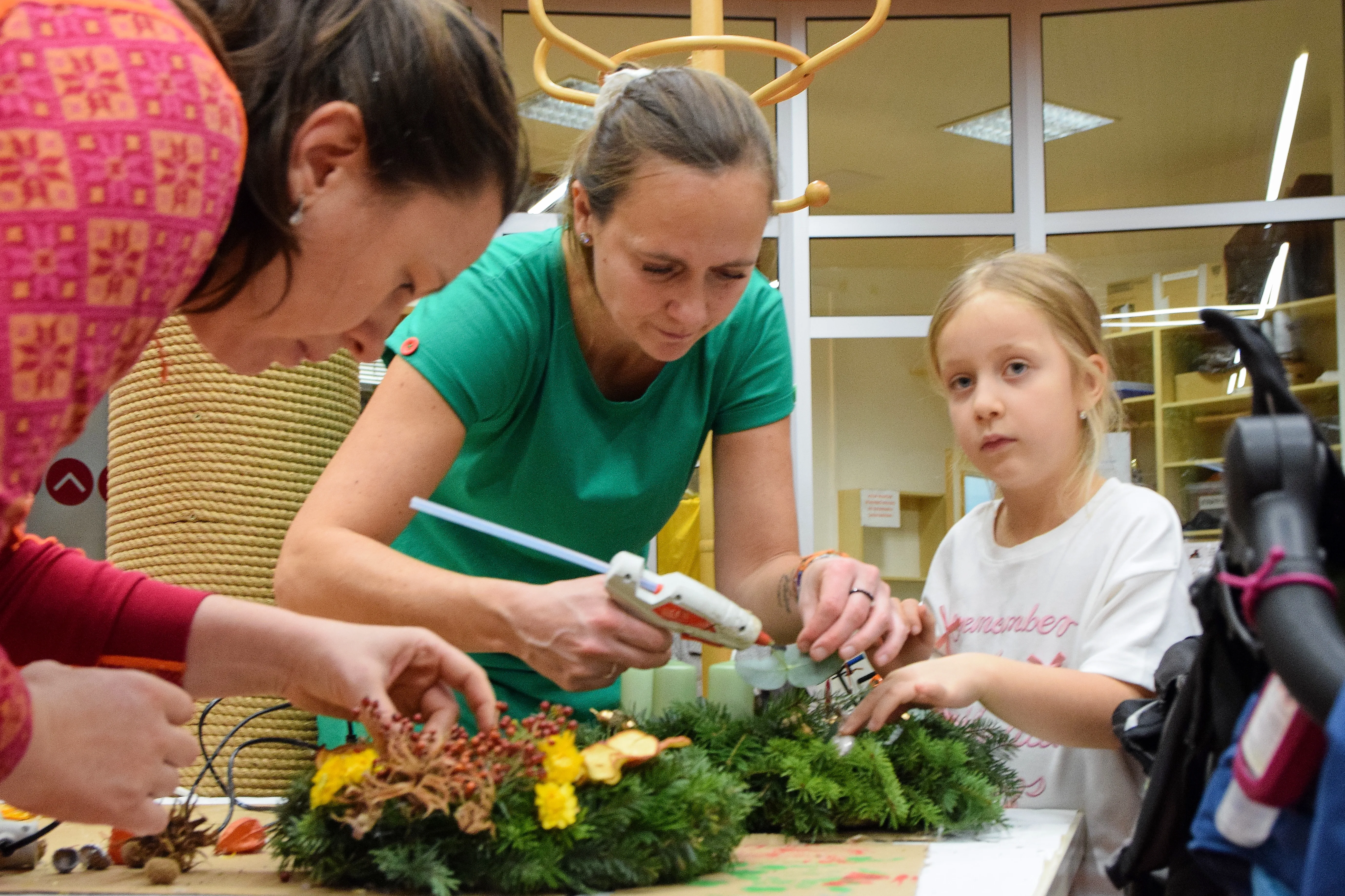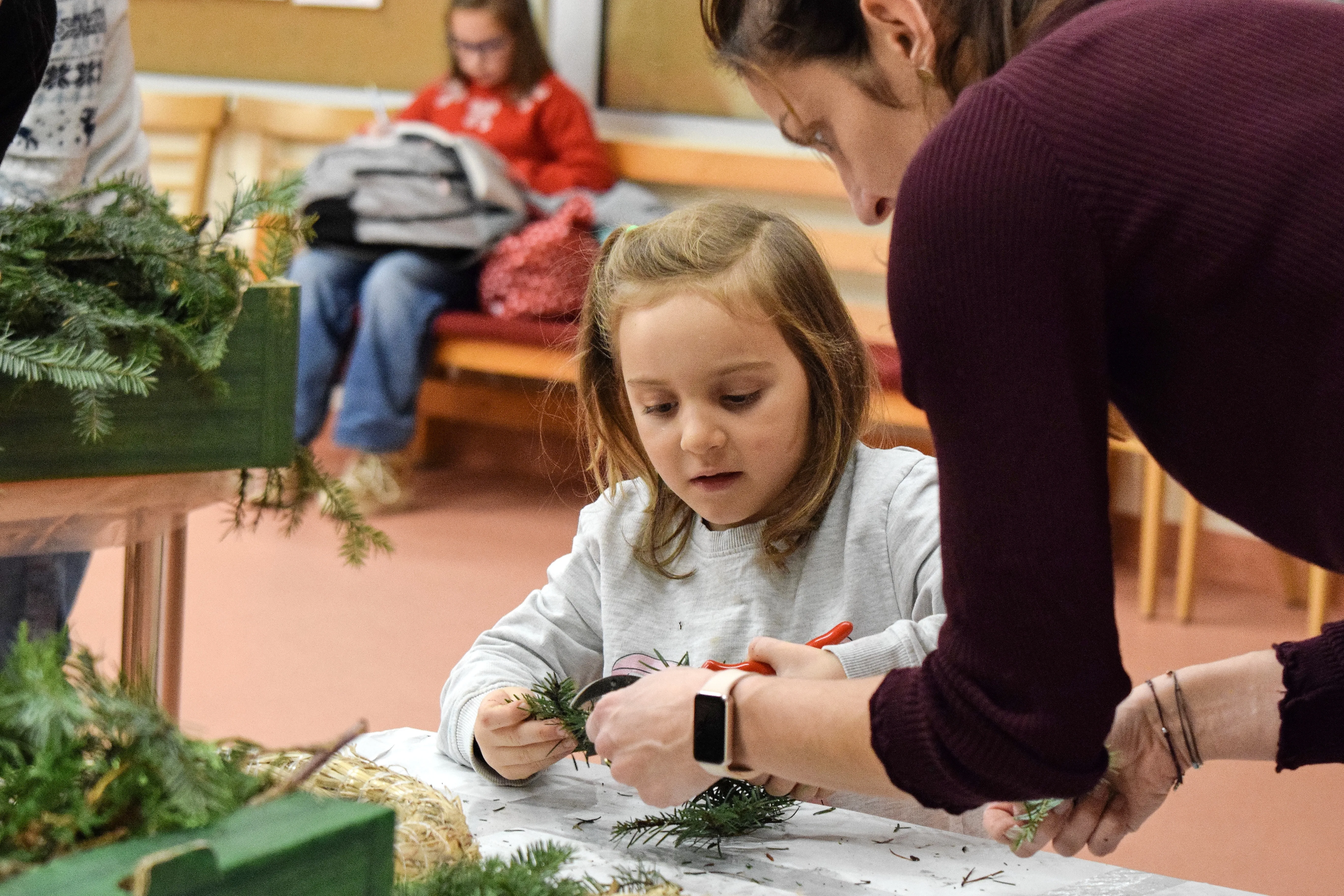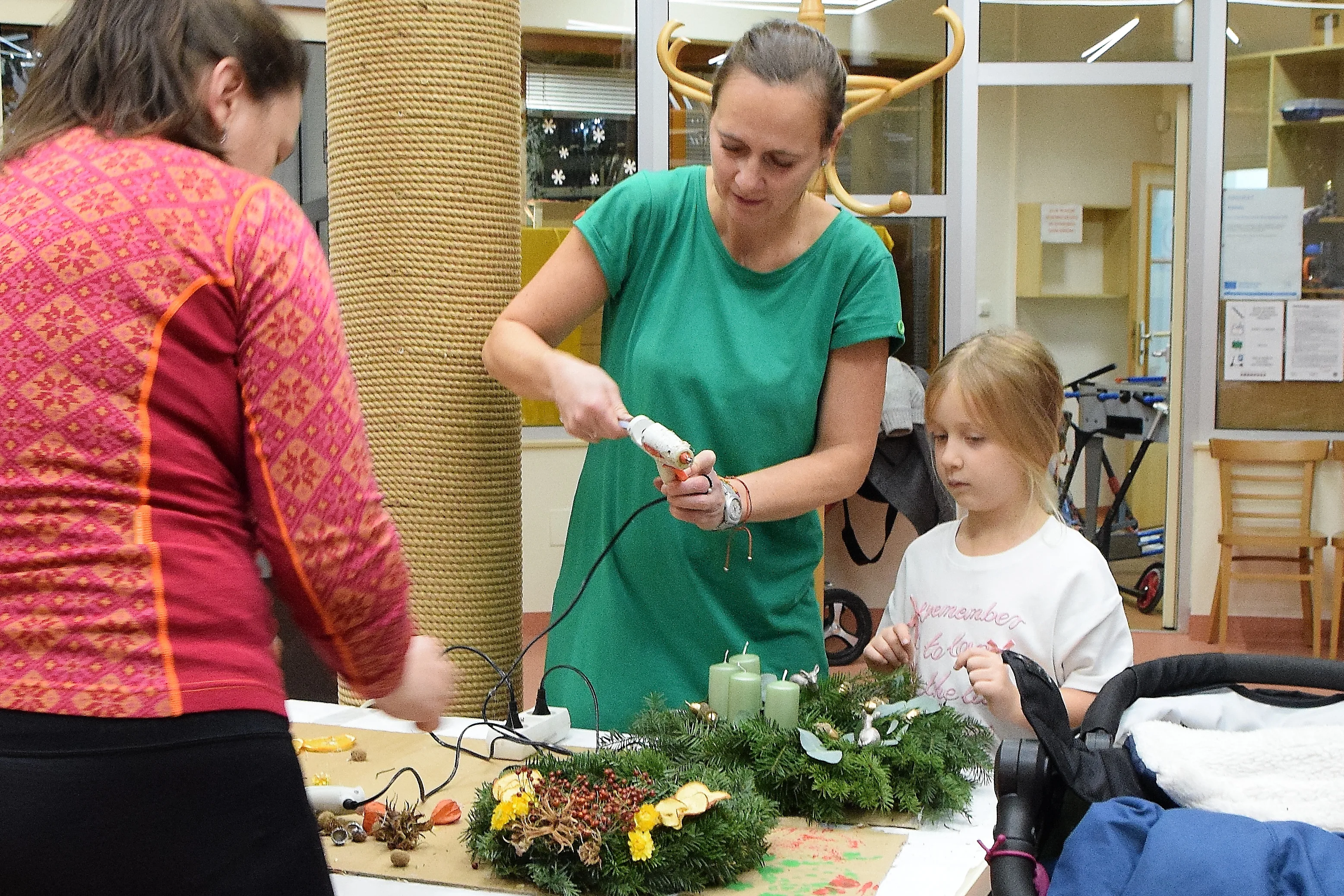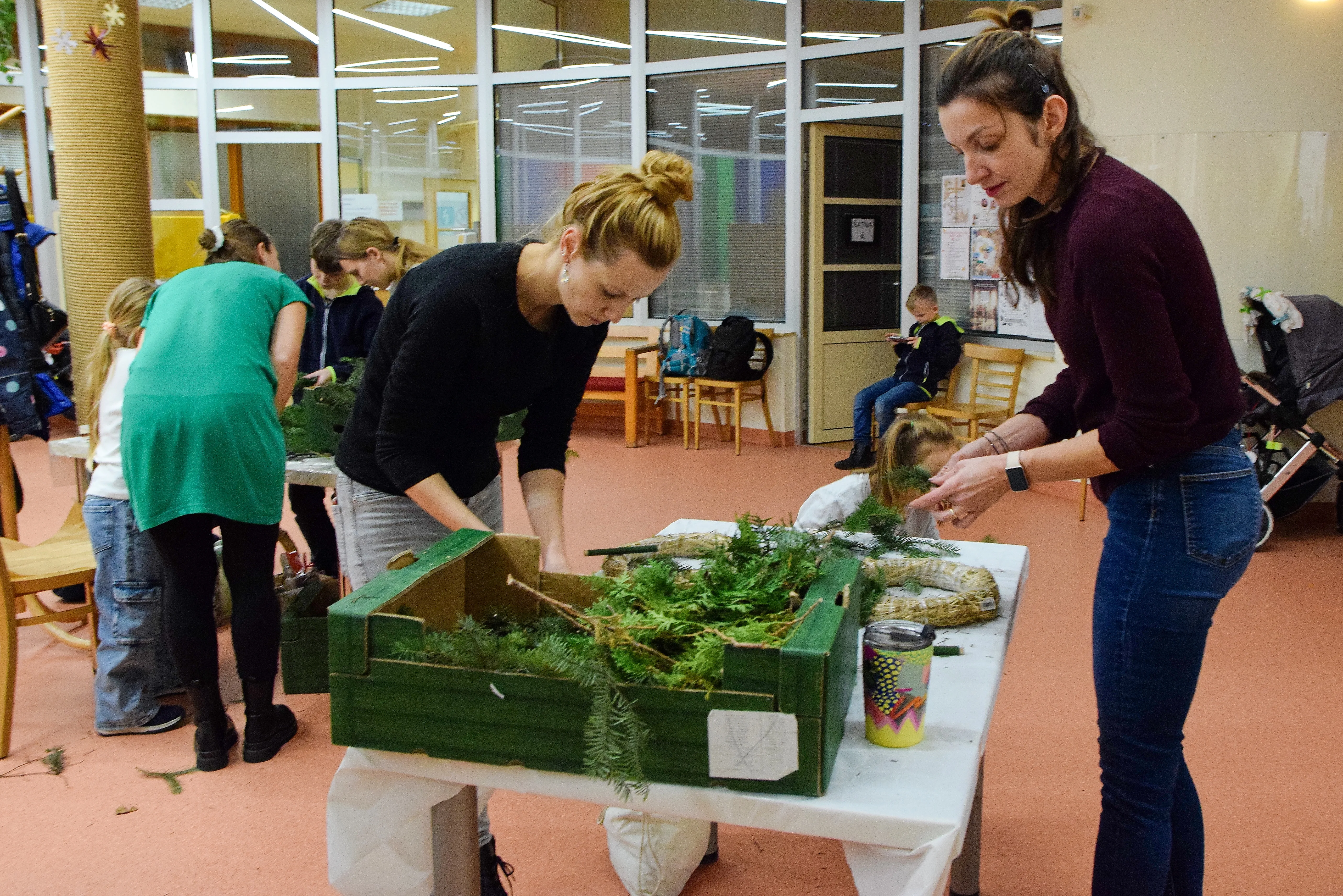 Adventní tvoření proběhlo ve čtvrtek 27. 11. dopoledne od 9 hodin a odpoledne od 14:30, a také v pátek 28. 11. ve stejných časech. Během obou dnů přicházely rodiny, děti i jednotlivci, aby si v klidné a přátelské atmosféře vytvořili svůj vlastní adventní věnec do domácnosti. Na místě si účastníci mohli dokoupit drobné ozdoby, sušené ovoce, přírodniny i třpytivé dekorace, které dodaly věncům osobitý styl. Pro ty, kdo si chtěli tvořit doma nebo začít úplně od základů, jsme měli připravené také balíčky s korpusem, drátem a větvemi. Velmi milé bylo sledovat tatínky tvořící se svými dětmi, celé rodiny pracující společně u jednoho stolu i účastníky, kteří si přišli vyrobit svůj první adventní věnec v životě. Adventní hudba a malé občerstvení na recepci přispěly k pohodové atmosféře, která provázela celé tvoření.