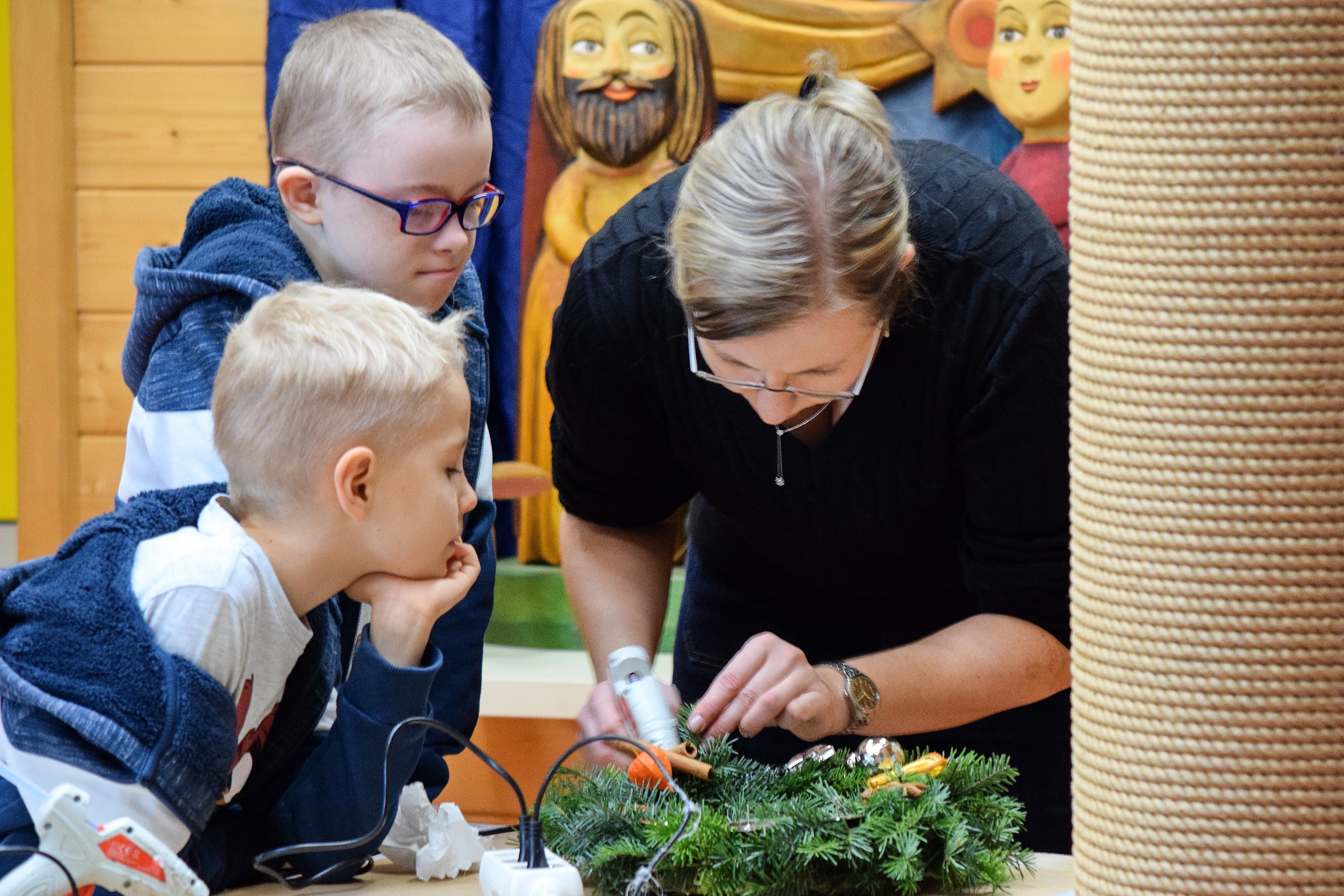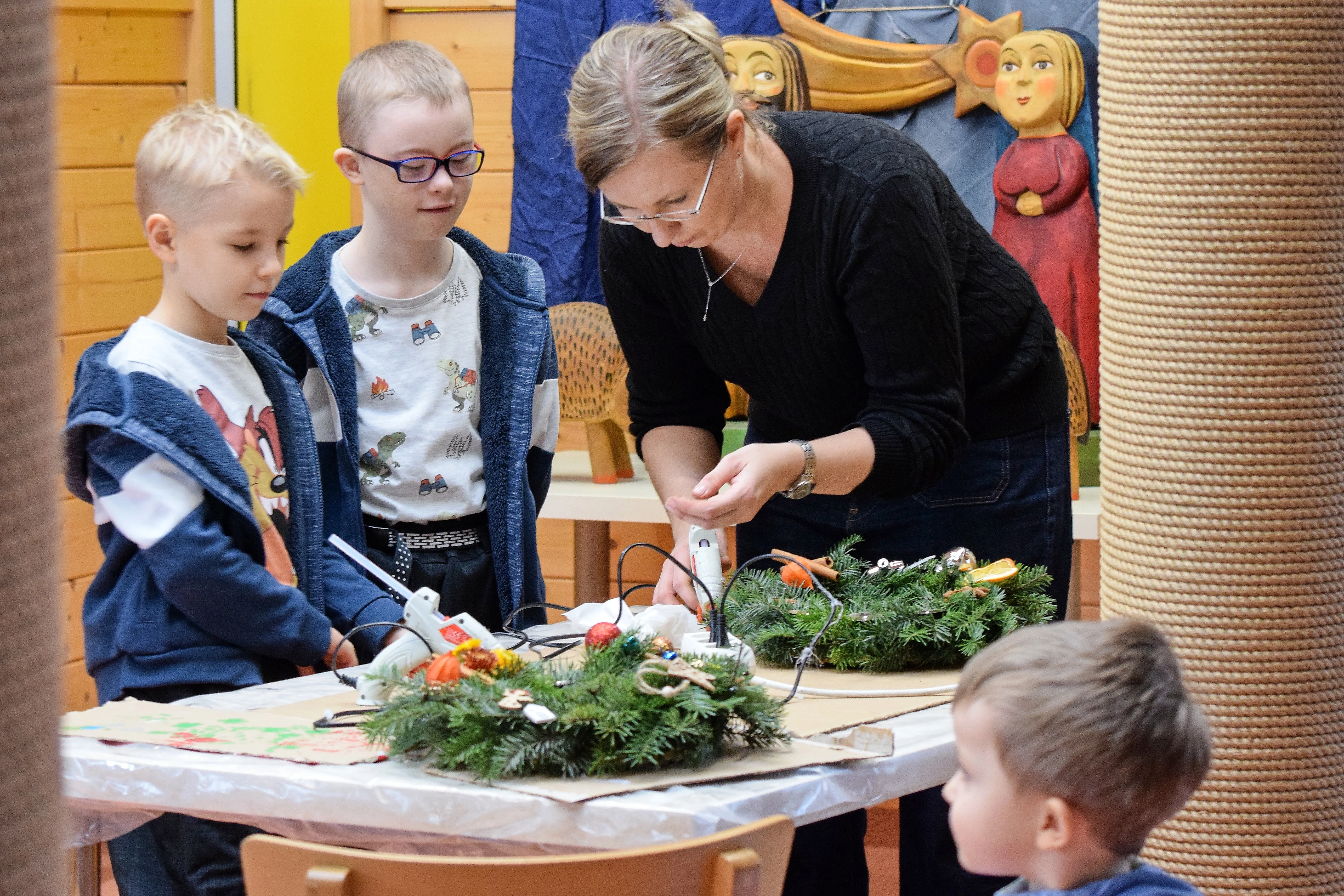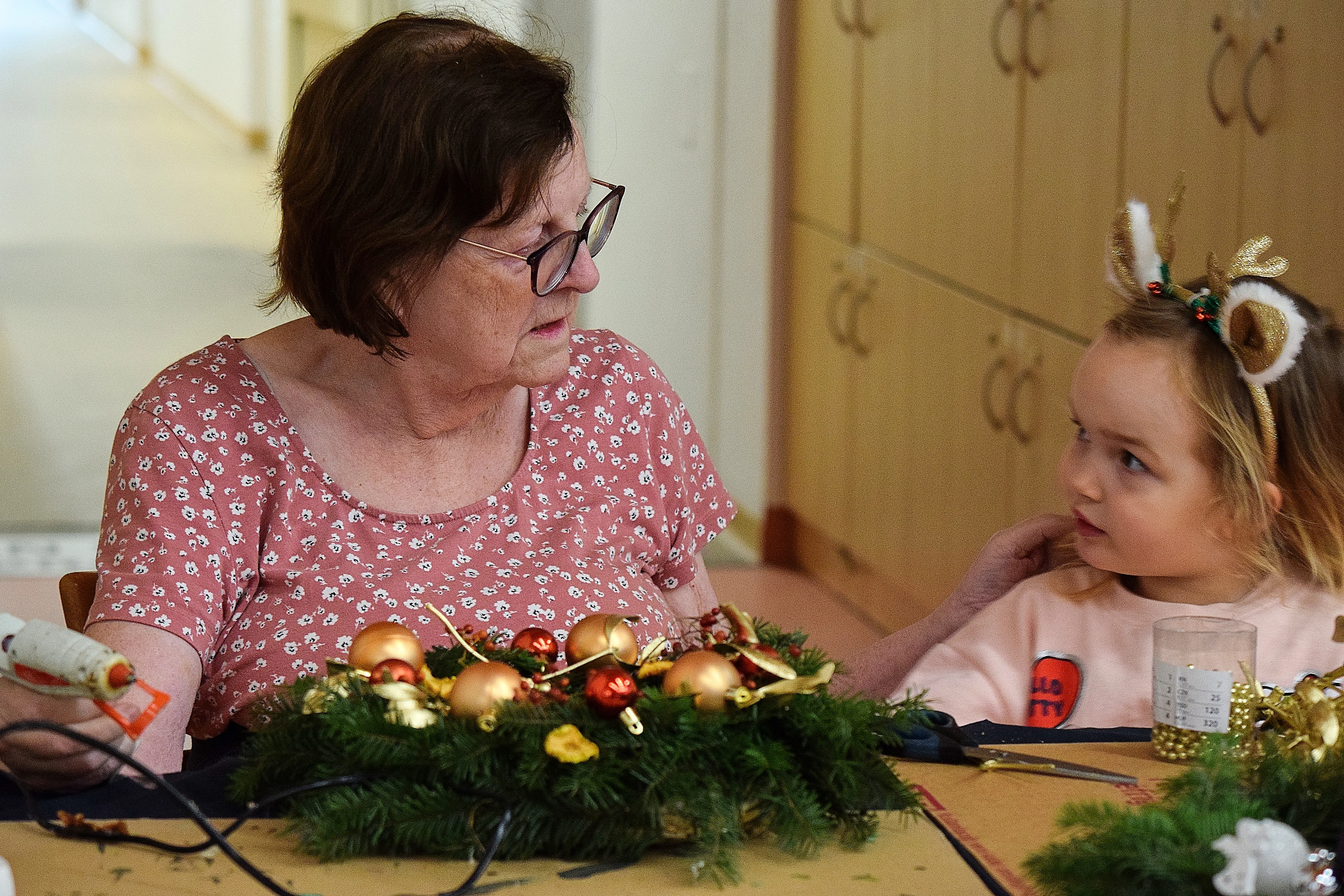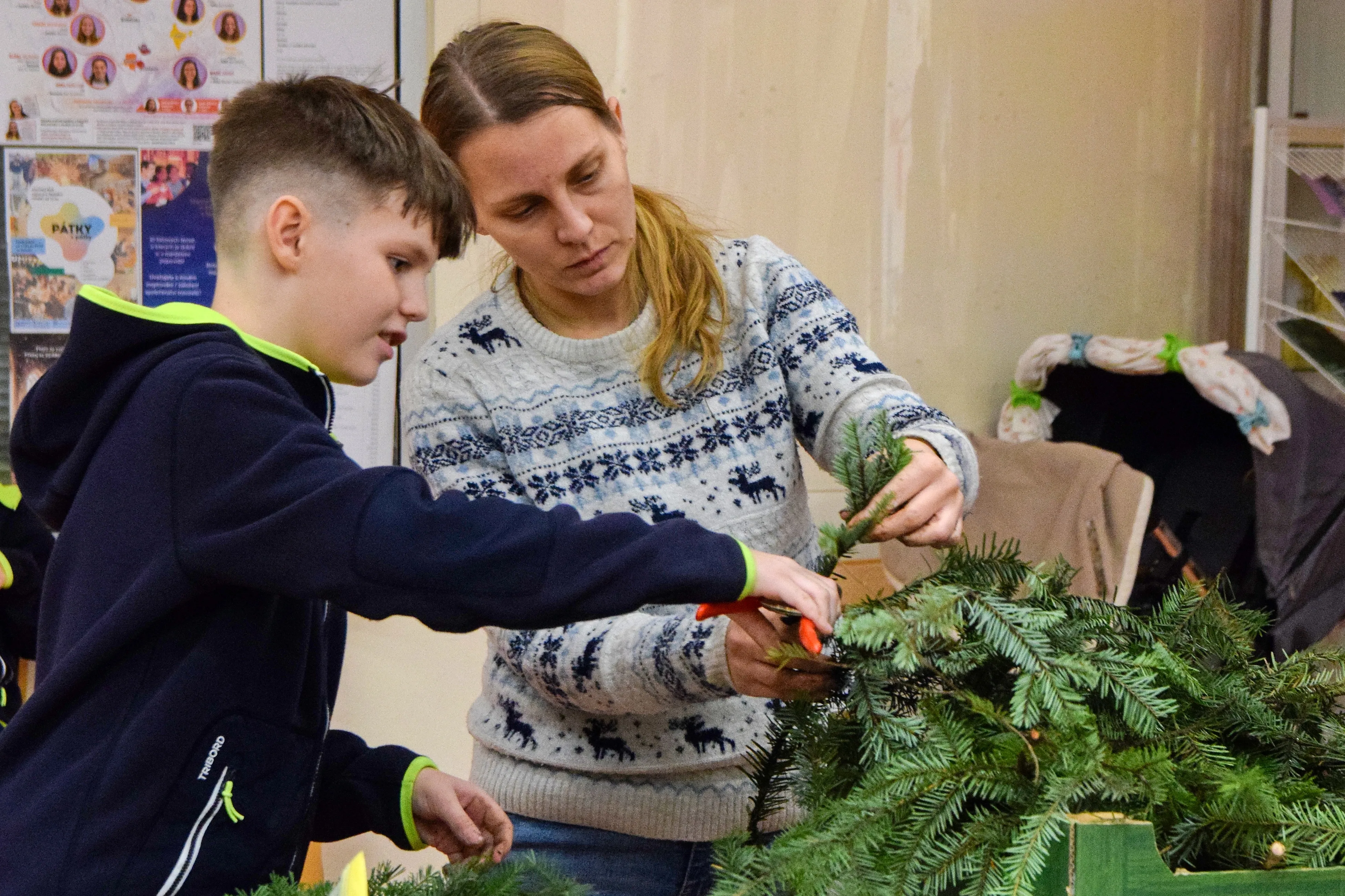 Adventní tvoření proběhlo ve čtvrtek 27. 11. dopoledne od 9 hodin a odpoledne od 14:30, a také v pátek 28. 11. ve stejných časech. Během obou dnů přicházely rodiny, děti i jednotlivci, aby si v klidné a přátelské atmosféře vytvořili svůj vlastní adventní věnec do domácnosti. Na místě si účastníci mohli dokoupit drobné ozdoby, sušené ovoce, přírodniny i třpytivé dekorace, které dodaly věncům osobitý styl. Pro ty, kdo si chtěli tvořit doma nebo začít úplně od základů, jsme měli připravené také balíčky s korpusem, drátem a větvemi. Velmi milé bylo sledovat tatínky tvořící se svými dětmi, celé rodiny pracující společně u jednoho stolu i účastníky, kteří si přišli vyrobit svůj první adventní věnec v životě. Adventní hudba a malé občerstvení na recepci přispěly k pohodové atmosféře, která provázela celé tvoření.