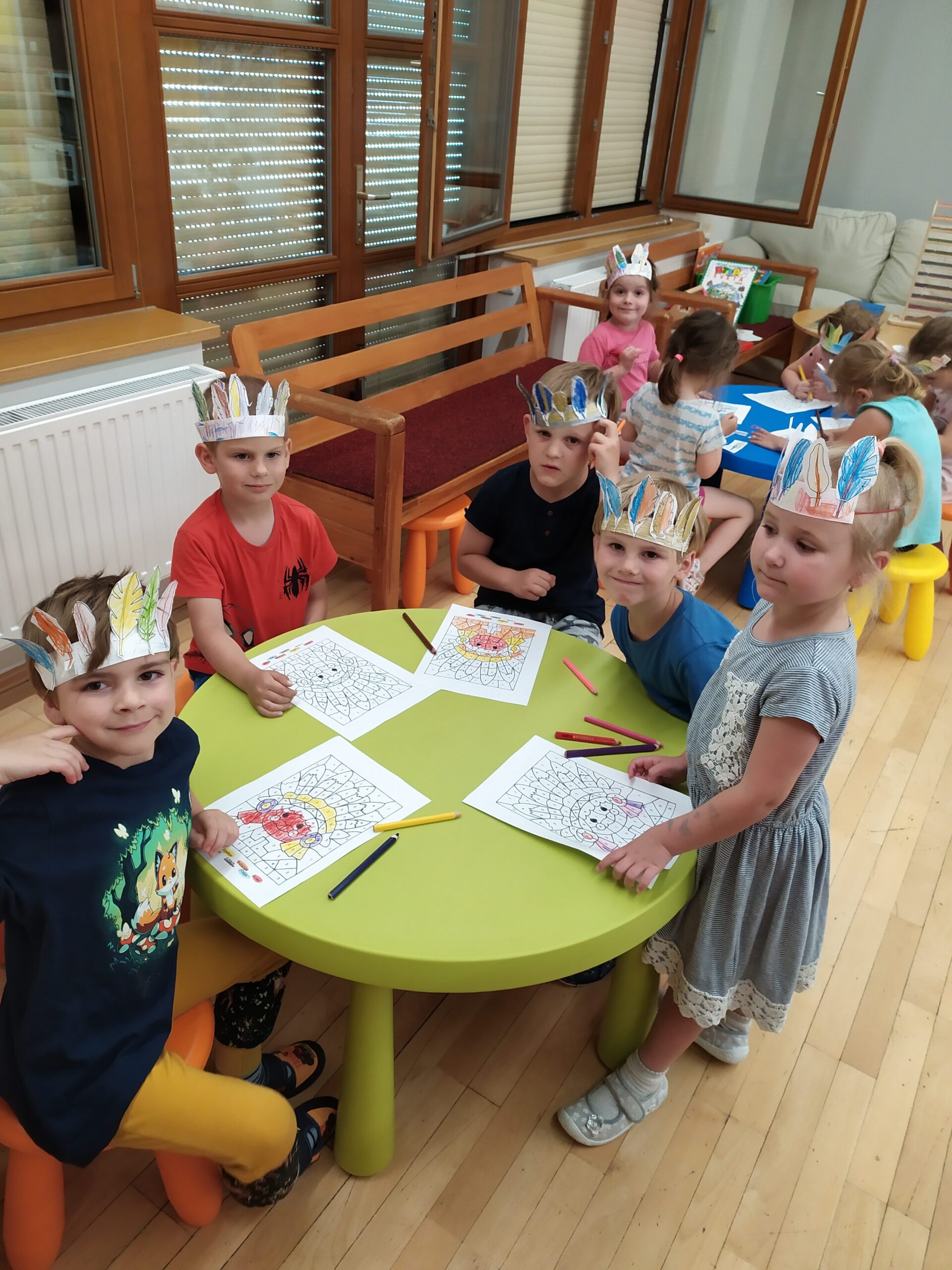 Druhým prázdninovým týdnem naše nejmladší táborníky provázel Všeználek. Hráli jsme si na Indiány. Tentokrát nám Všeználek přivedl svoji kamarádku Hvězdičku, která děti seznámila s životem svého indiánského kmene.